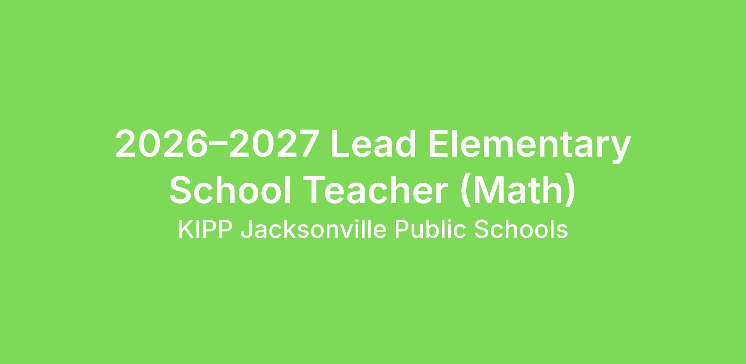 KIPP Jacksonville Public Schools seeks Lead Elementary teachers for our Kindergarten-4th grade classrooms in the 2026-2027 school year.
