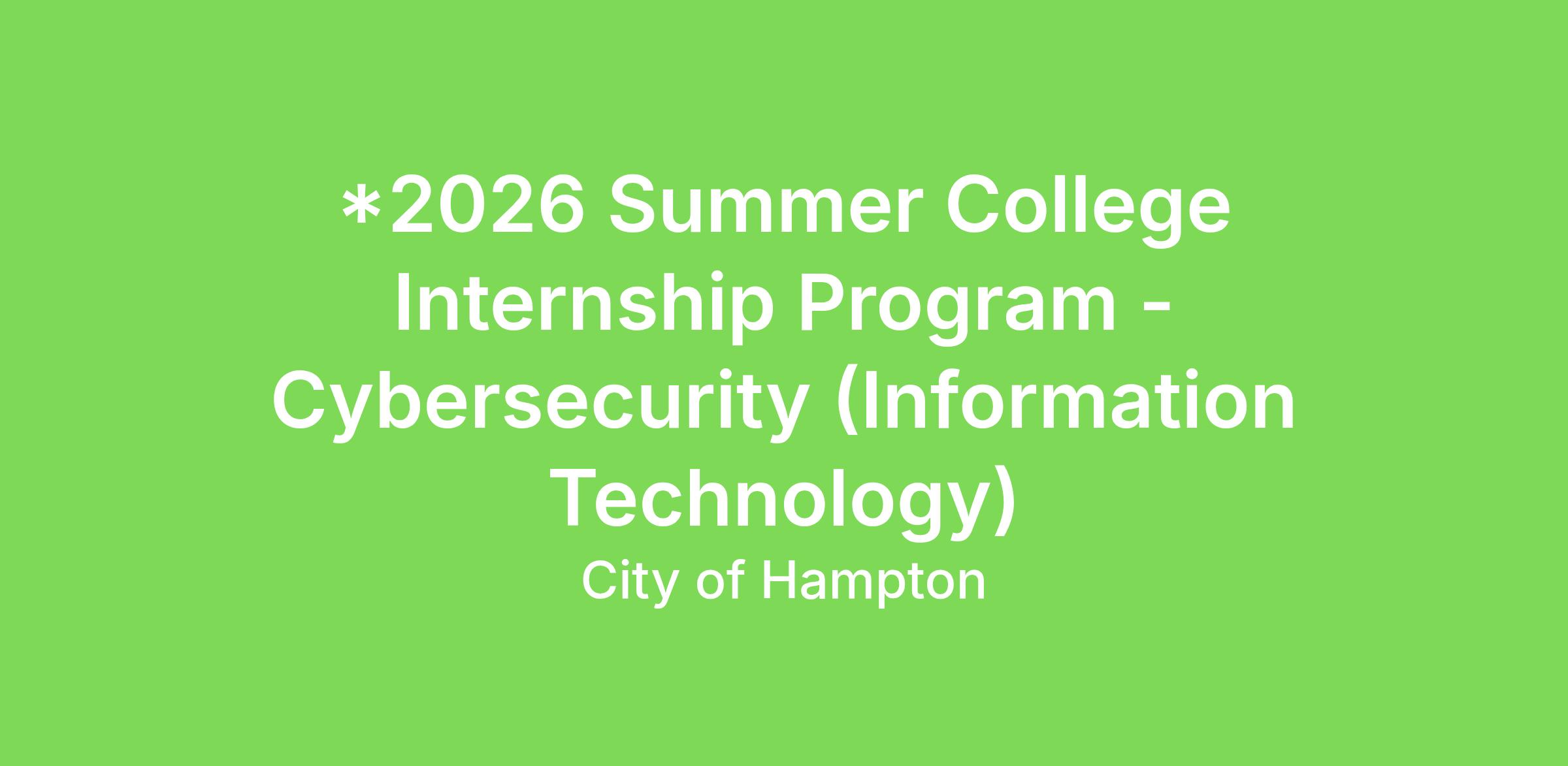 *2026 Summer College Internship Program - Cybersecurity (Information Technology)