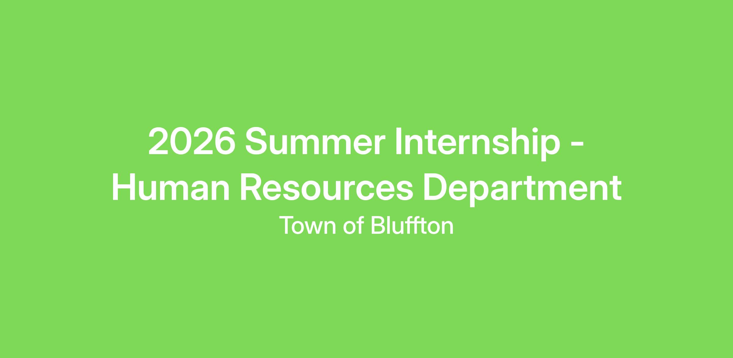 To apply for an Internship at the Town of Bluffton, please submit your resume, application for employment and cover letter. Your cover letter must indicate what weeks you are available to work from 5/1/2026 – 9/4/2026 and why you are interested in the Human Resources department.