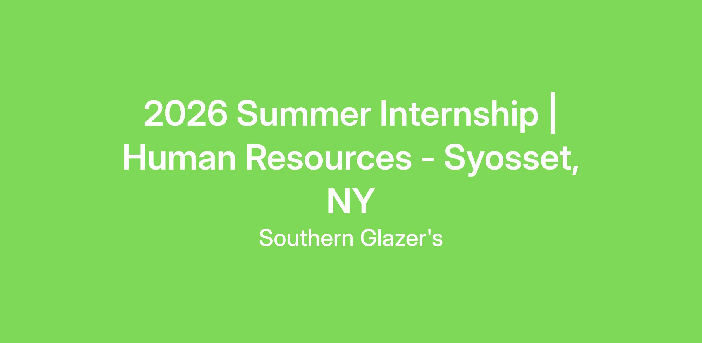 2026 Summer Internship | Human Resources - Syosset, NY