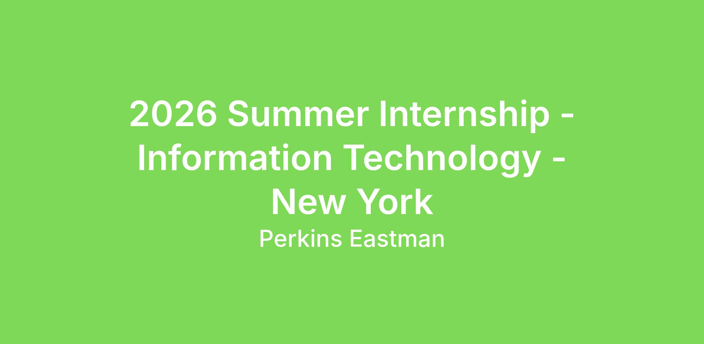 Summer Internship - Information Technology - New York