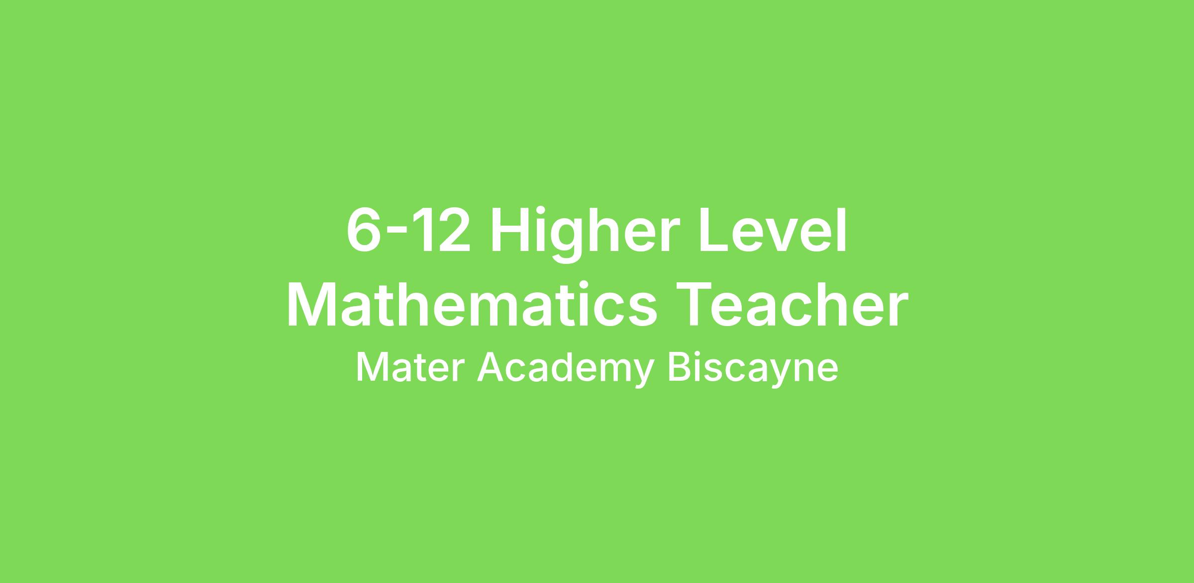 Mater Academy Biscayne is seeking a highly qualified and passionate High School Math Teacher to instruct advanced-level mathematics courses, including but not limited to Algebra II, Pre-Calculus, AP Calculus, and AP Statistics. The ideal candidate will engage students in rigorous instruction, promote critical thinking, and support student achievement in a college-preparatory environment.