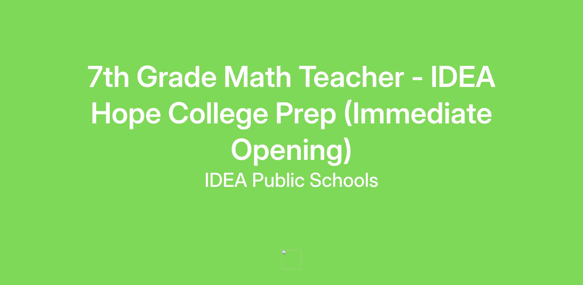 Role Mission: IDEA Math teachers are responsible for the increasing student achievement and mastery of grade level content. Math teachers deliver various levels of Pre-AP Pre-Algebra and Algebra 1 Pre-AP instruction across grade levels that provides students the knowledge and skills needed to access advanced level Math curriculum. Math teachers at IDEA provide the foundational math understanding that students will need continually. Teachers are tasked with delivering quality instruction and supports that facilitate student learning and comprehension, playing a critical role in students’ path to and through college.