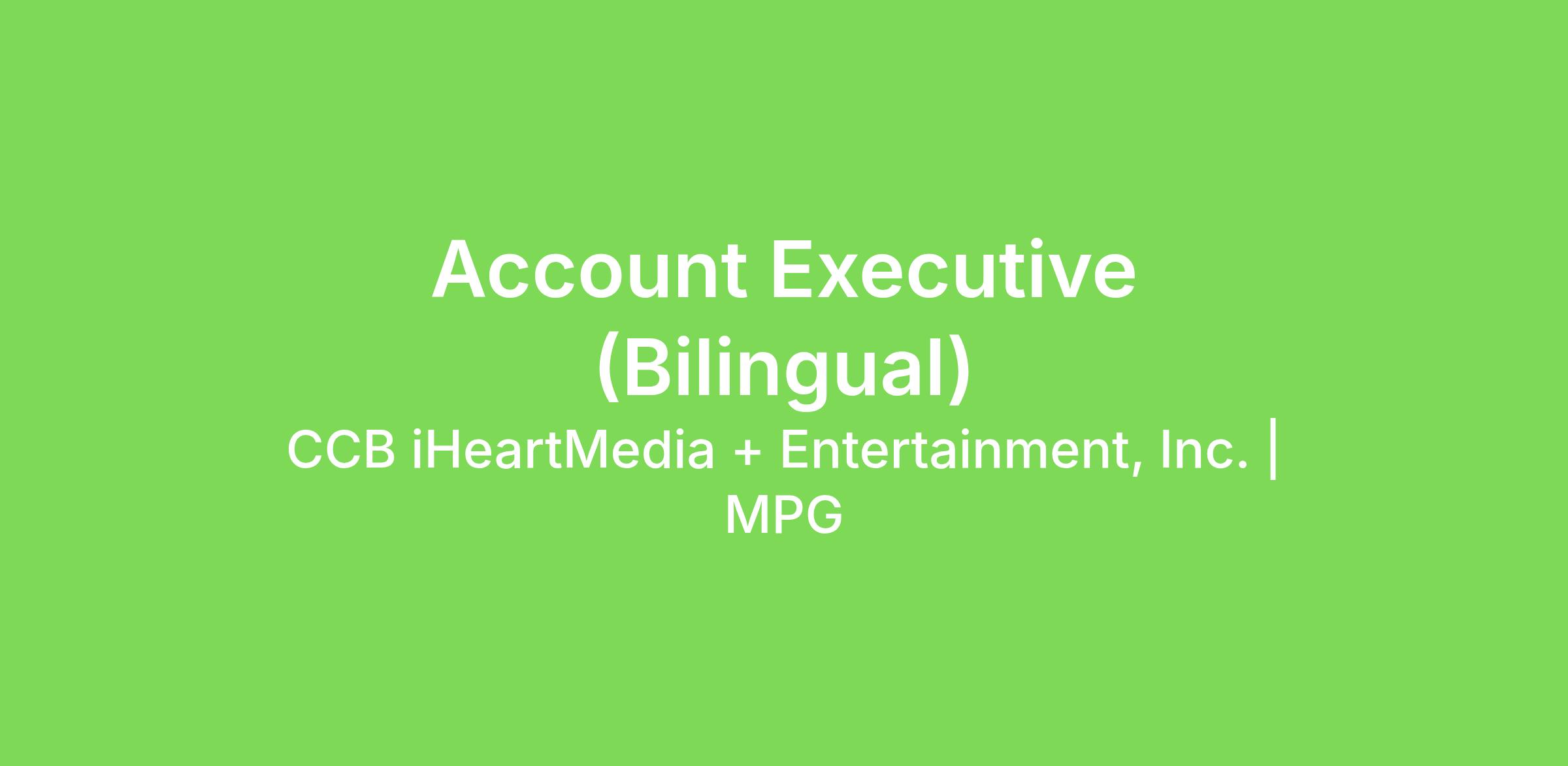 Looking for your next big challenge? Join us as an Account Executive and put your bilingual Spanish–English skills to work in a role where communication truly matters. We’re looking for someone with a goal‑driven mindset, a fast pace, and a passion for delivering standout client service. If you’re ready to hit the ground running and tap into the full power of iHeart’s platforms to help clients win, this is your moment.
