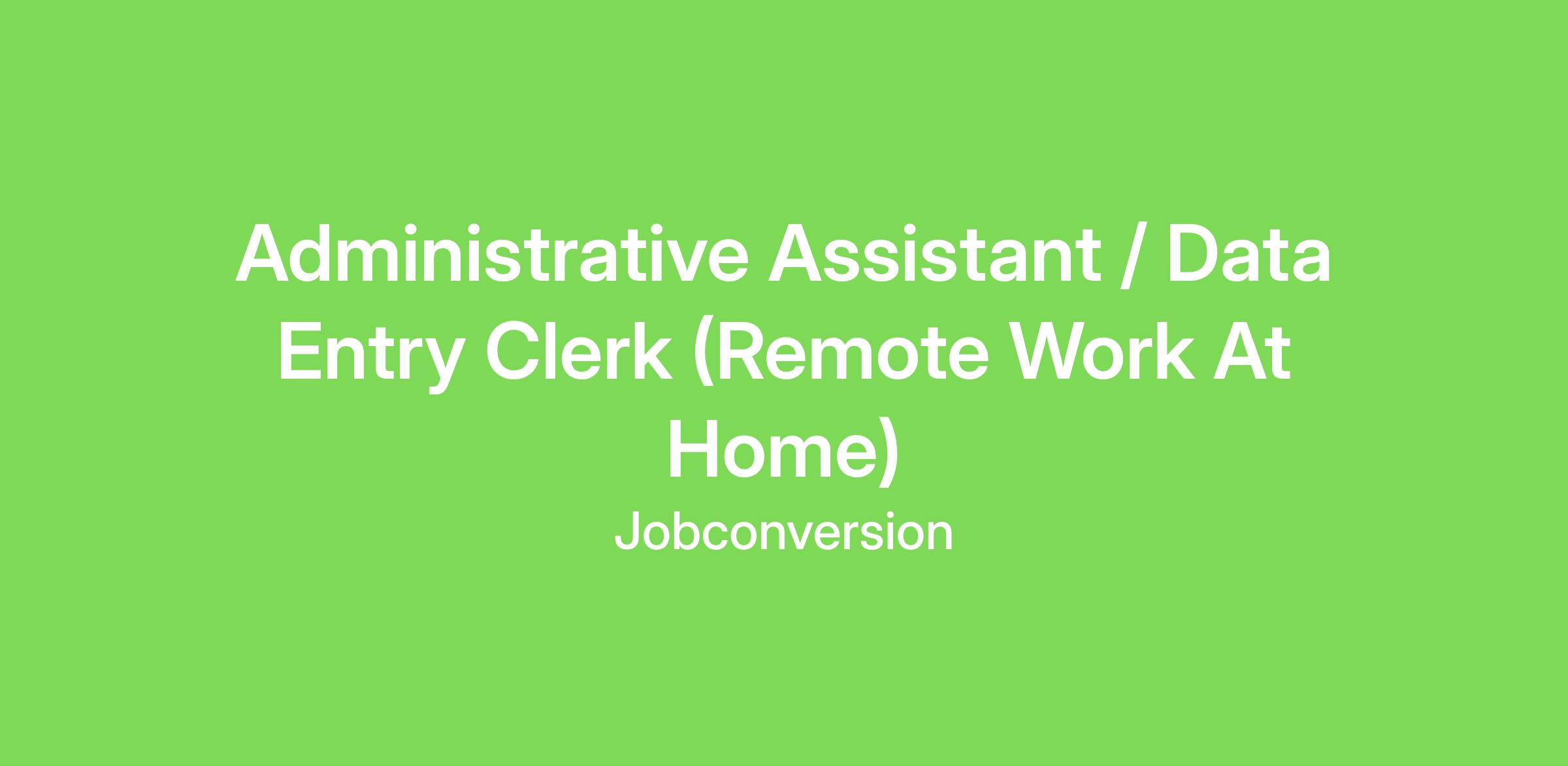 Administrative Assistant / Data Entry Clerk (Remote Work At Home)