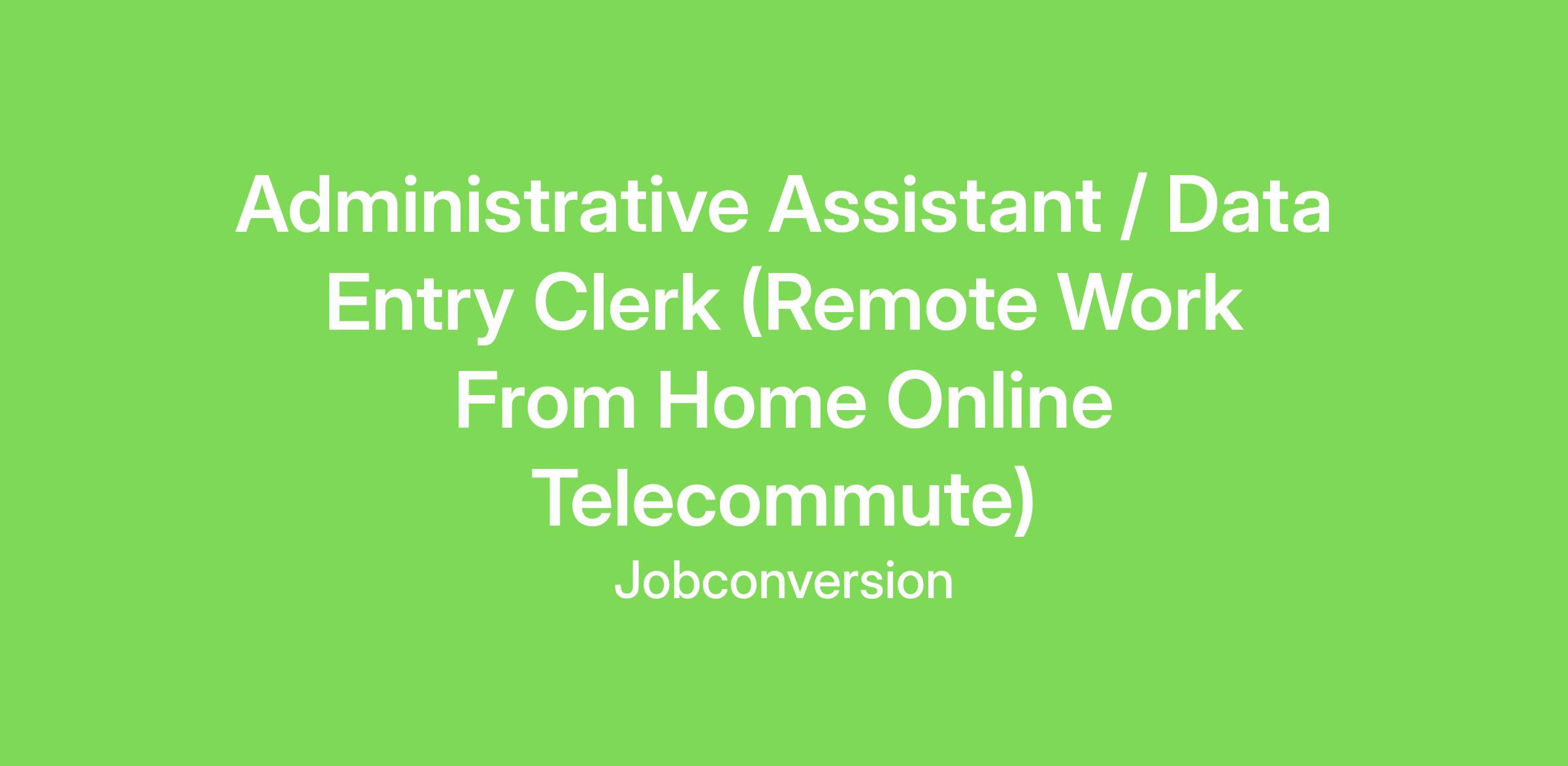 Administrative Assistant / Data Entry Clerk (Remote Work From Home Online Telecommute)