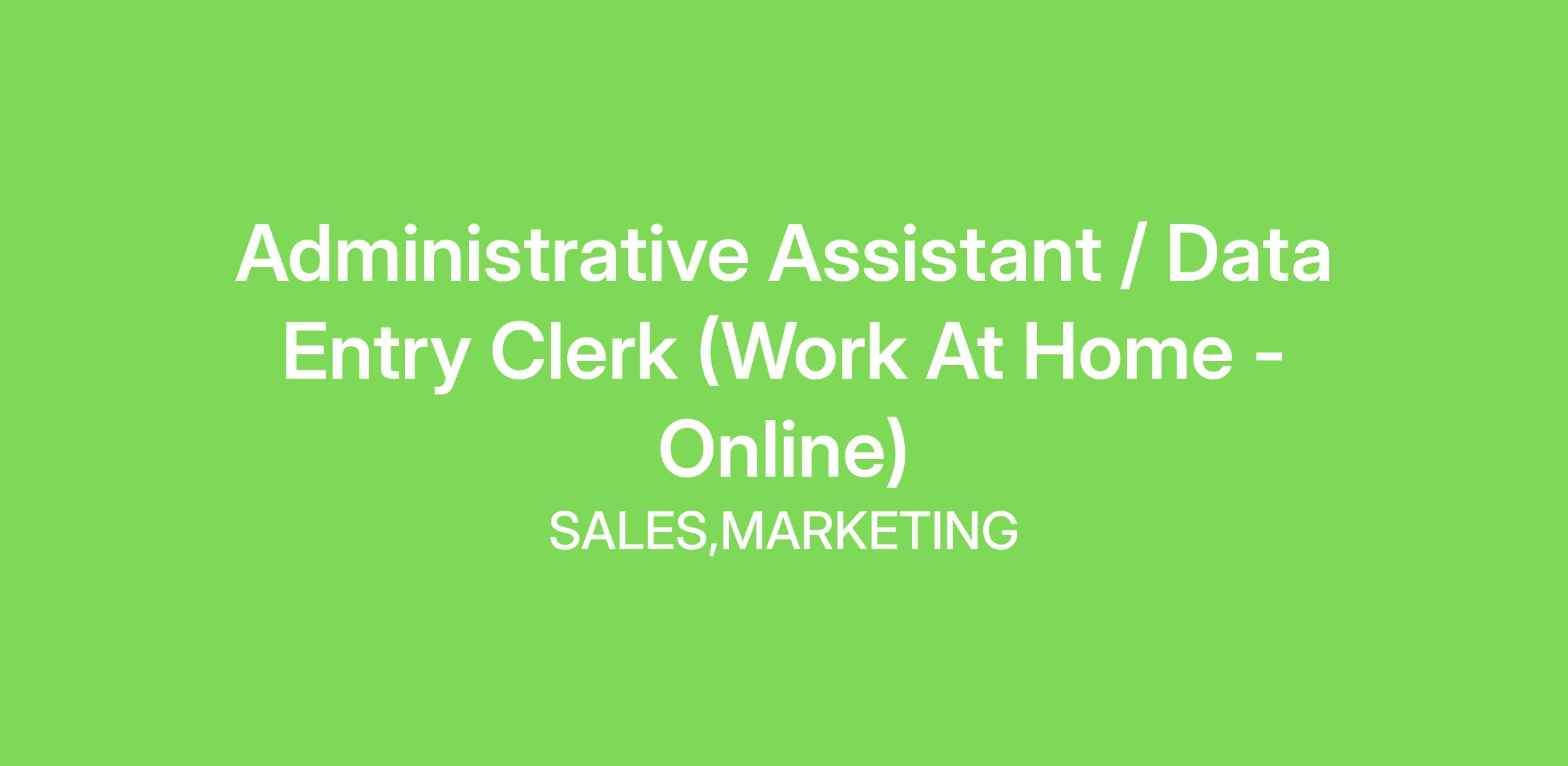Administrative Assistant / Data Entry Clerk (Work At Home - Online)