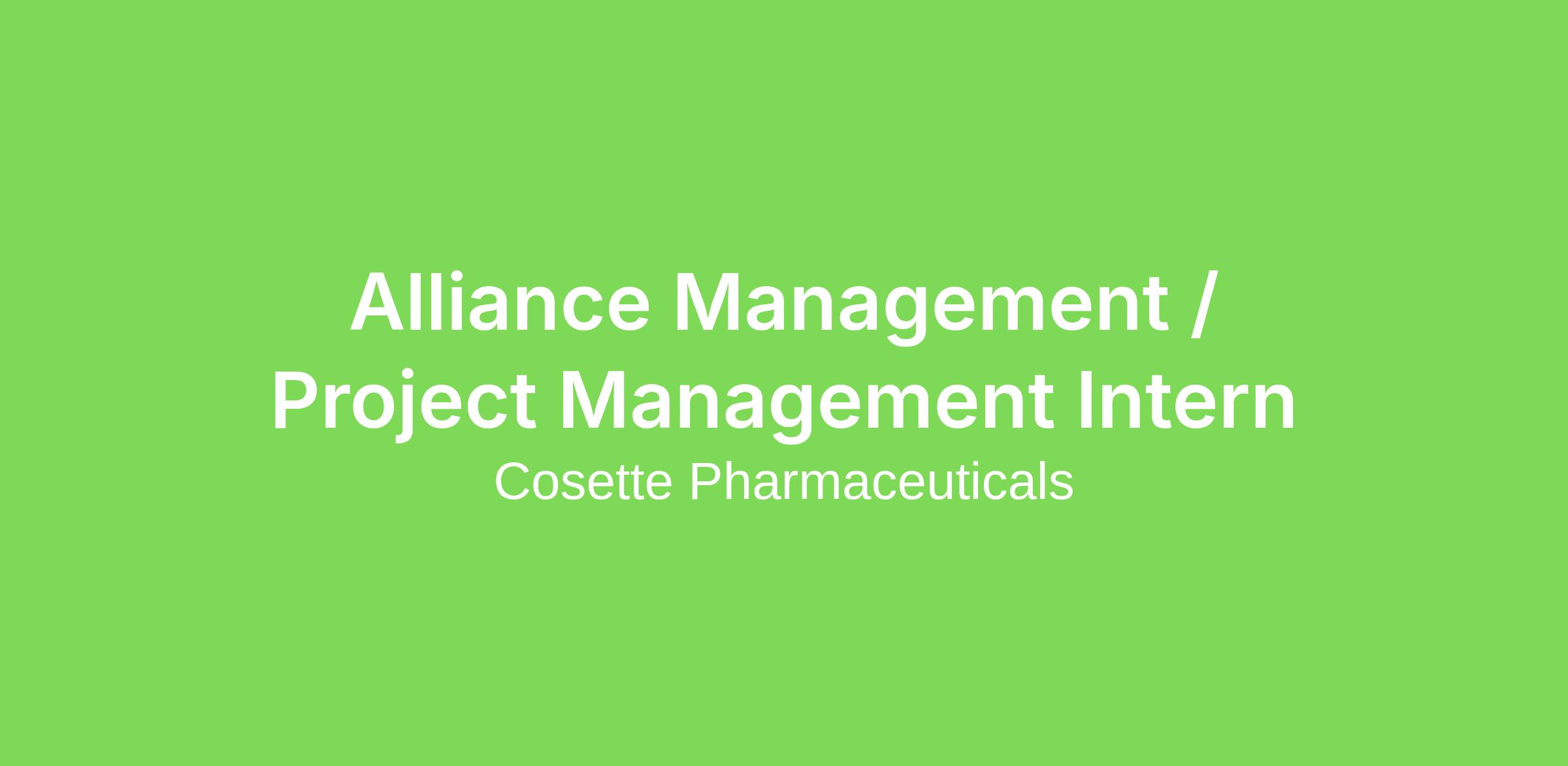 The Alliance Management/Project Management Intern will contribute to the asset integration and drug development process by providing project and portfolio level support to Business Development and Alliance Management departments within Cosette Pharmaceuticals. In this role, the candidate will be assigned and directly support meaningful projects pertaining to systems infrastructure development, asset integration, and due diligence support. Responsibilities will include engagement across all interdepartmental stakeholders, in addition to supporting active projects.