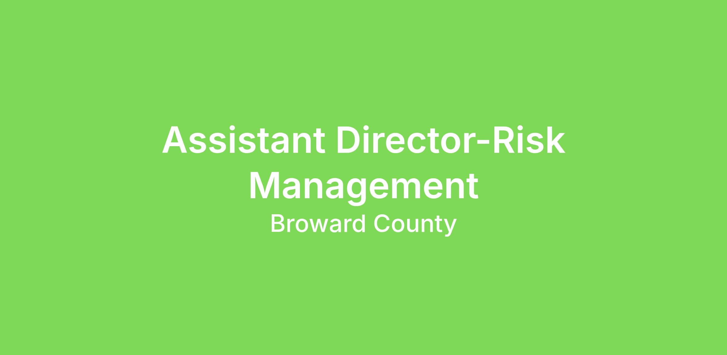 The Broward County Board of Commissioners Risk Management Division is seeking to fill the Assistant Director of Risk Management position.  The Assistant Director plays a pivotal leadership role in safeguarding the County’s people, operations, and assets. This position provides direct oversight of the liability and workers’ compensation claims sections, advances enterprise risk strategies, and partners across departments to identify, assess, and mitigate risk. The ideal candidate brings strong analytical acumen, public-sector savvy, and a collaborative leadership style.