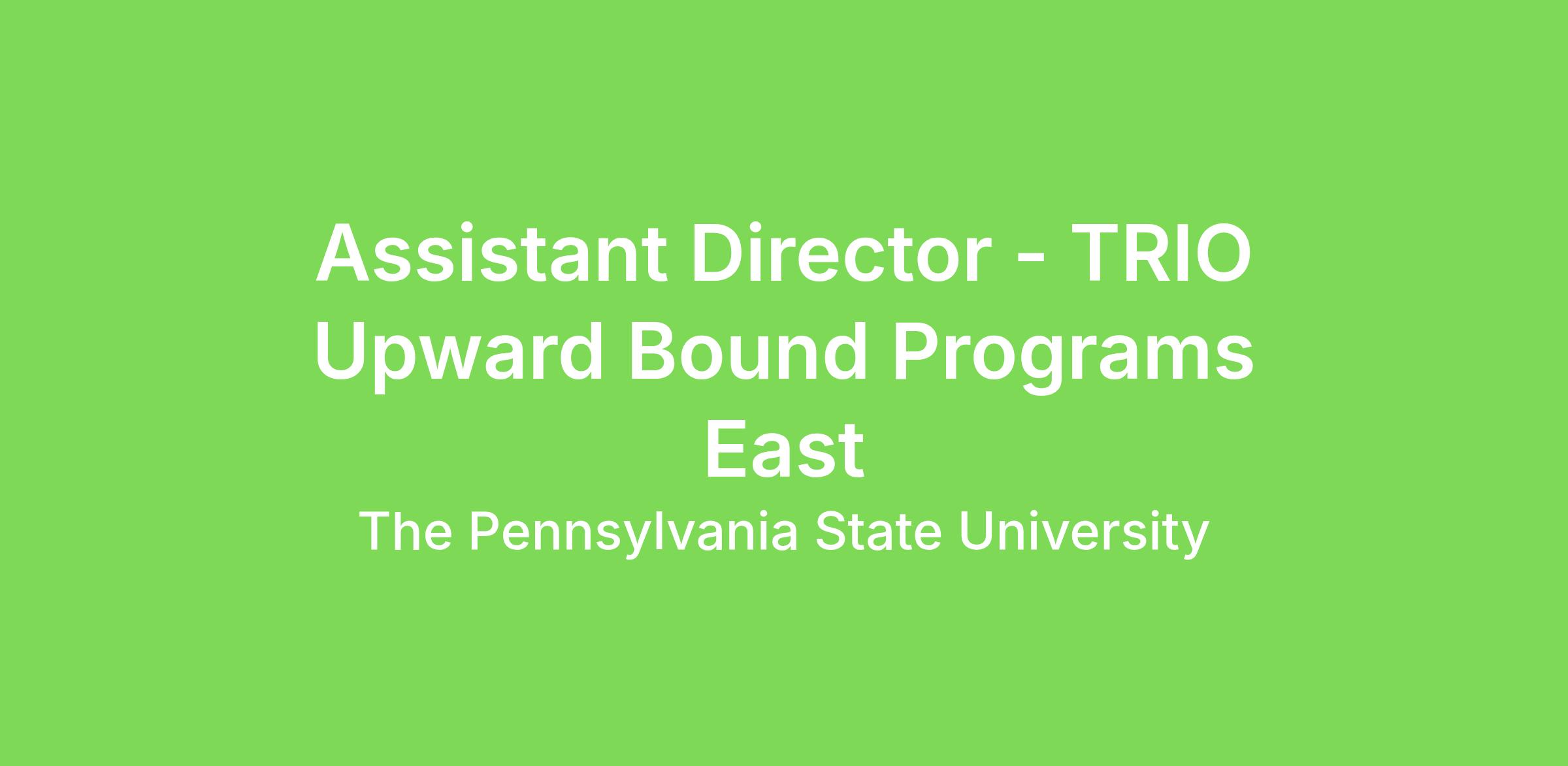 Penn State’s Upward Bound Programs (UBP) in the Office of Educational Equity is inviting applications for the position of Assistant Director - East. Upward Bound provides fundamental support to participants in their preparation for college entrance. The program provides opportunities for participants to succeed in their precollege performance and ultimately in their higher education pursuits.