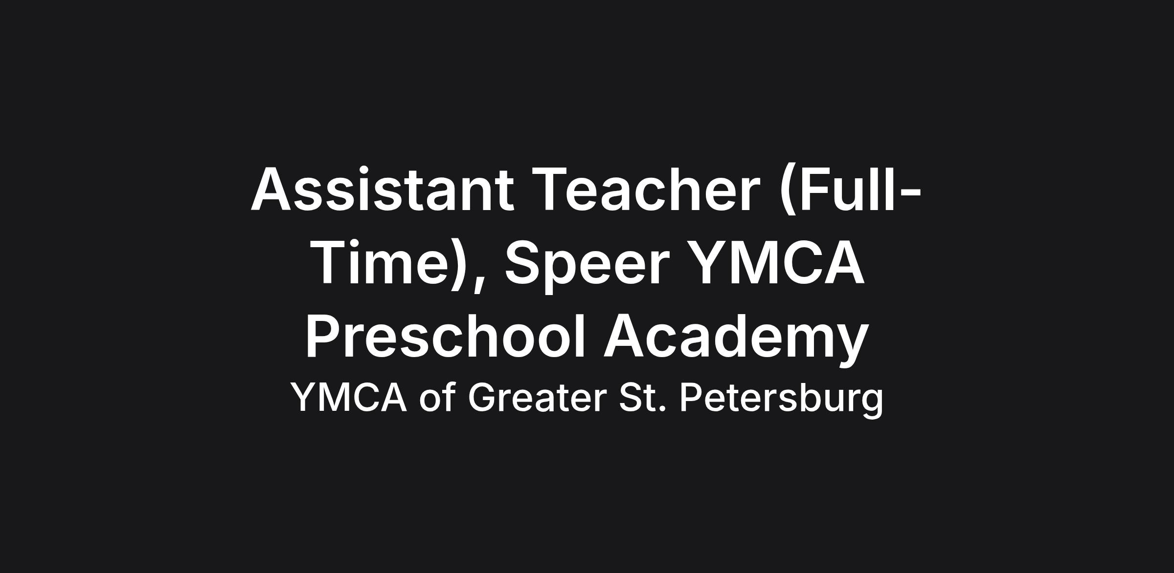Description: We're excited to announce the grand opening of our renovated facility in South St. Pete, featuring two new infant rooms and two new toddler rooms in March 2026! This is your chance to be part of something new and vital where you can make a lasting impact on the lives of young children and their families. At the YMCA Preschool Academies, we are committed to creating a nurturing environment where children and staff thrive. As an Assistant Teacher, you'll play a vital role in shaping the educational and emotional growth of children ages birth to five. If you're passionate about early childhood education and love inspiring young learners, we want to hear from you!