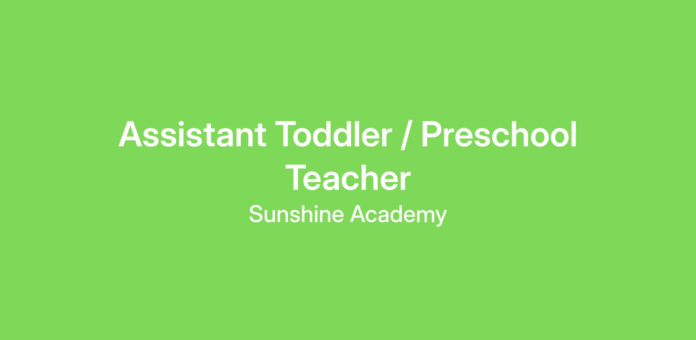 As a Early Childhood Education Assistant Teacher at Sunshine Academy, you’ll help care for little ones. You’ll provide a safe and loving environment that nurtures the social, emotional, cognitive, creative, and physical development of each child.