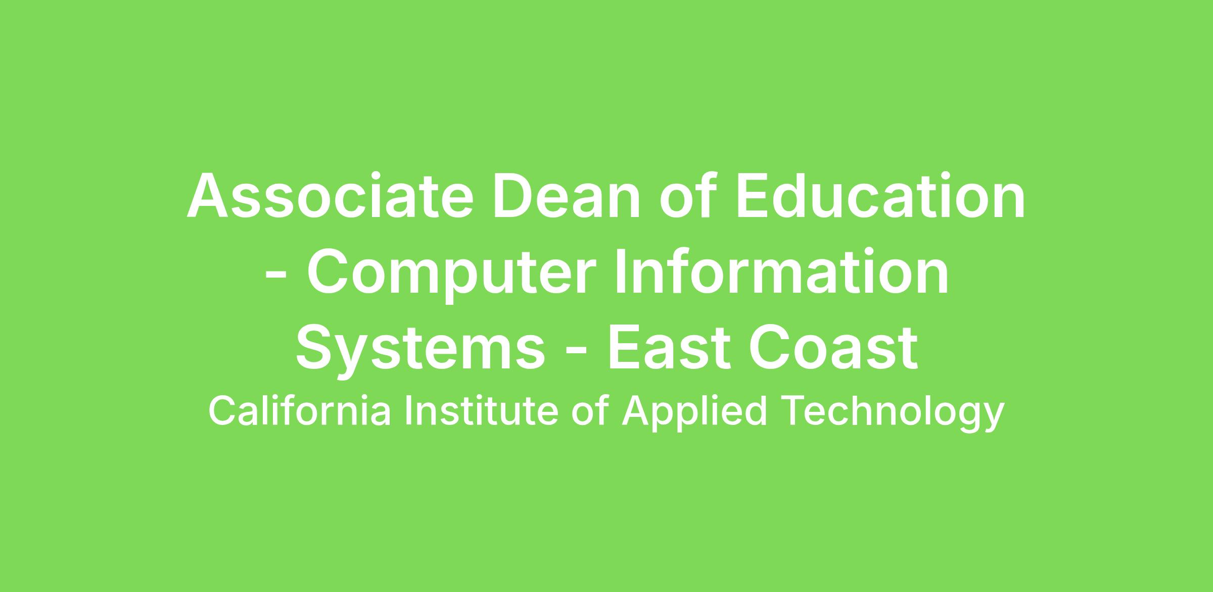 The starting salary range for the Associate Dean of Education - Computer Information Systems - East Coast is $85,000- $95,000/yearly. We base salary offers on a variety of considerations, such as education, experience, equity and other business and organizational needs.
