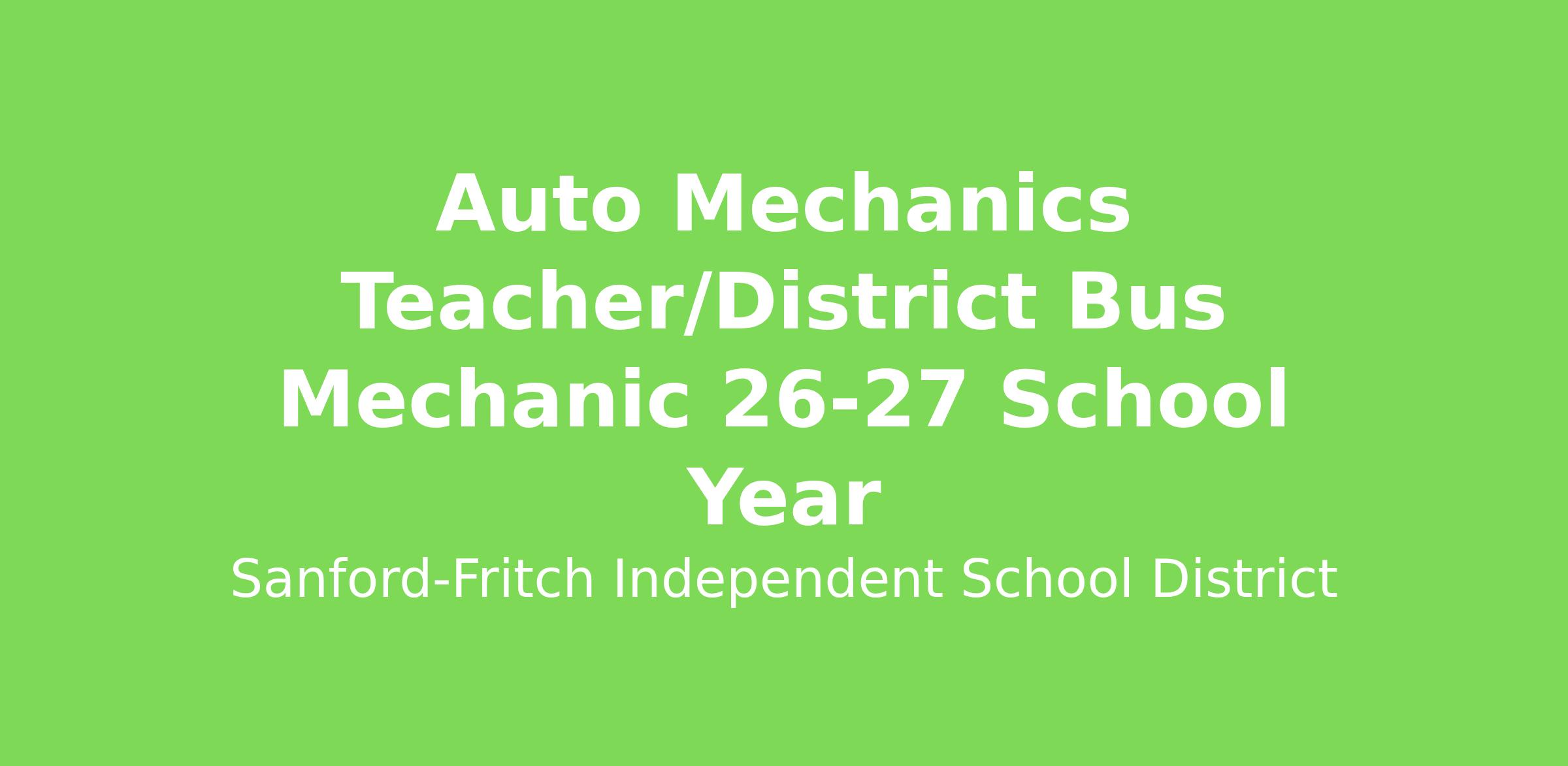 Auto Mechanics Teacher/District Bus Mechanic 26-27 School Year