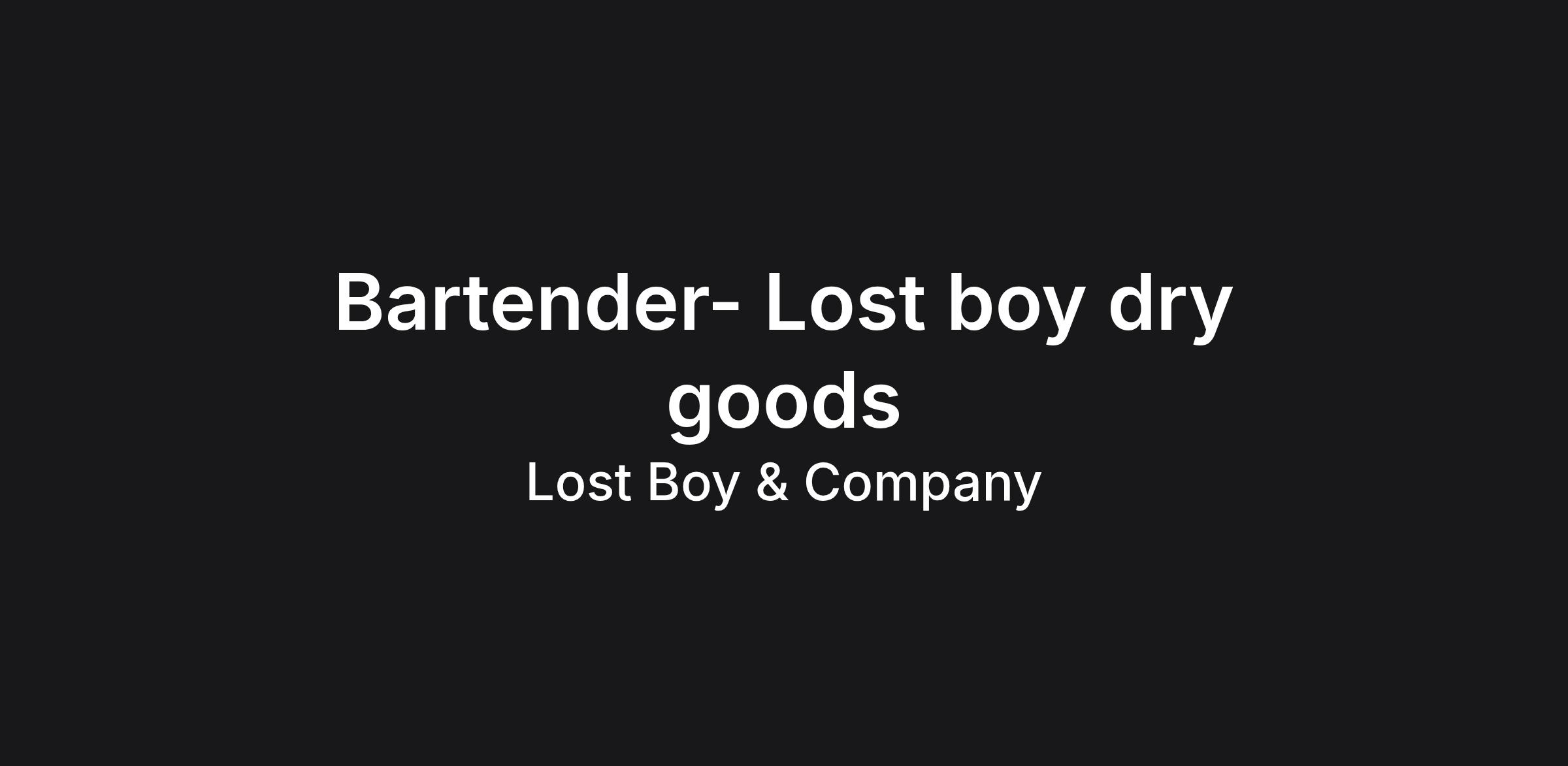 Bartender- Lost boy dry goods