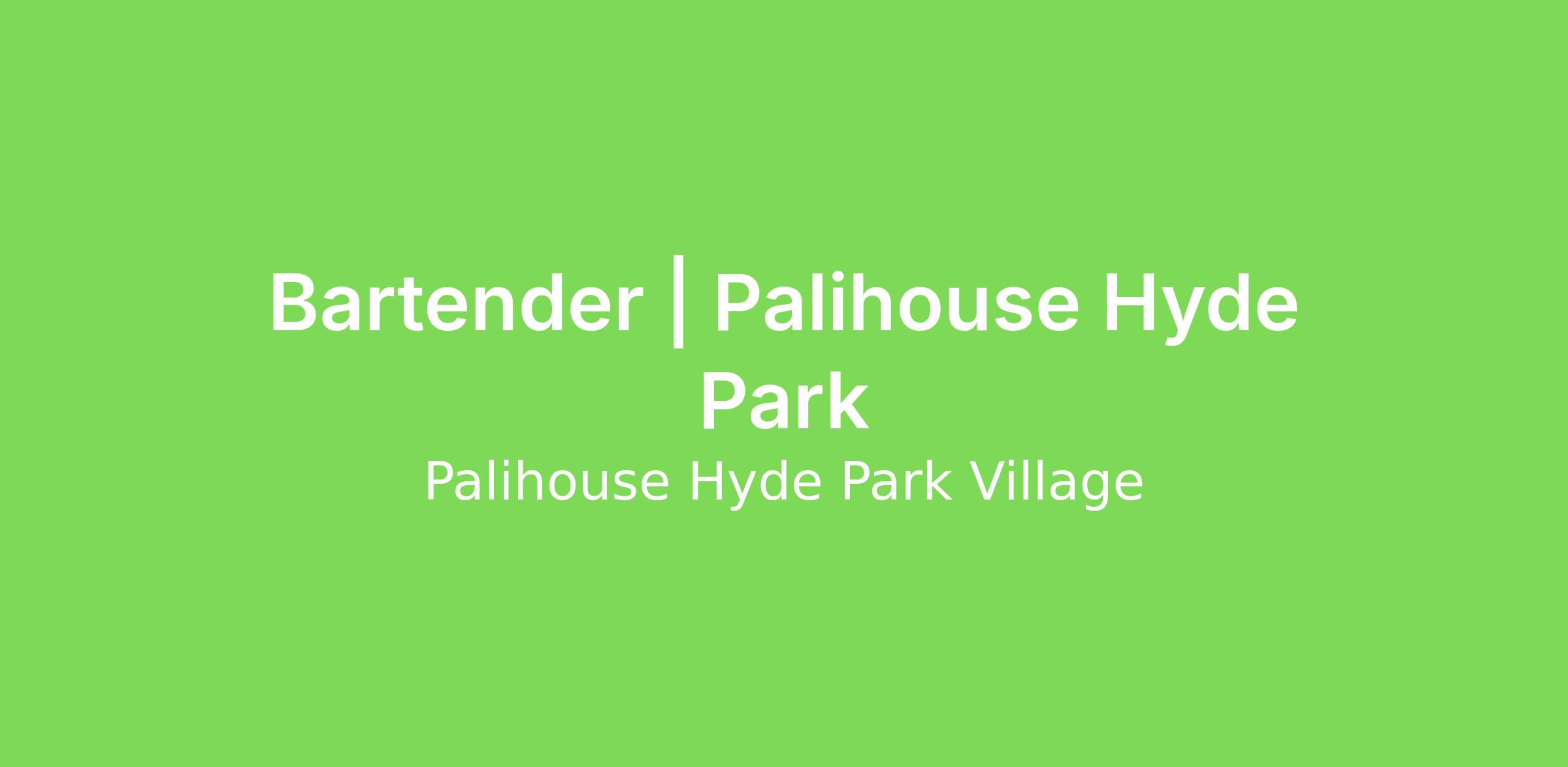 BARTENDER | PALIHOUSE HYDE PARK