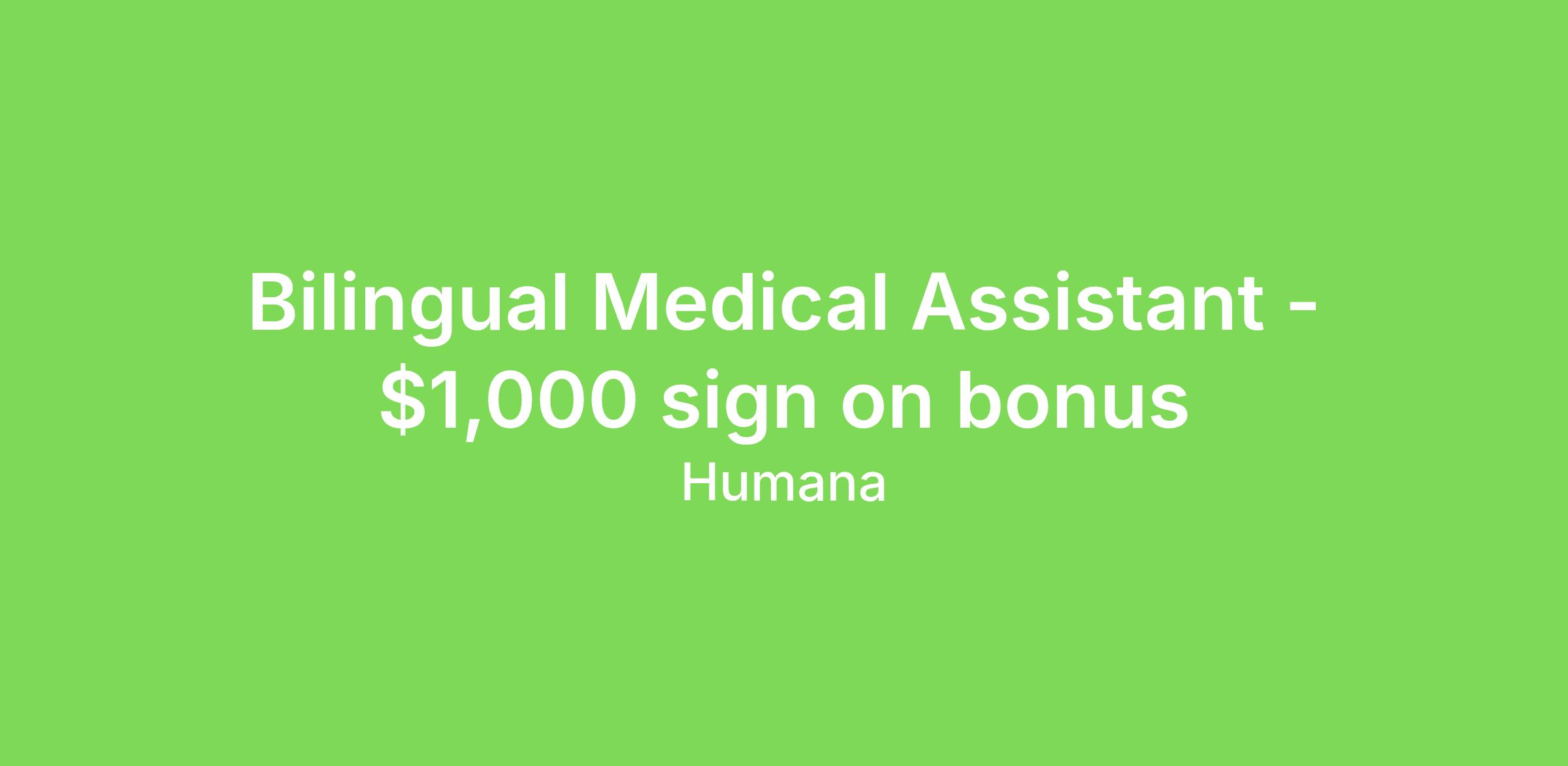 Bilingual Medical Assistant - $1,000 sign on bonus