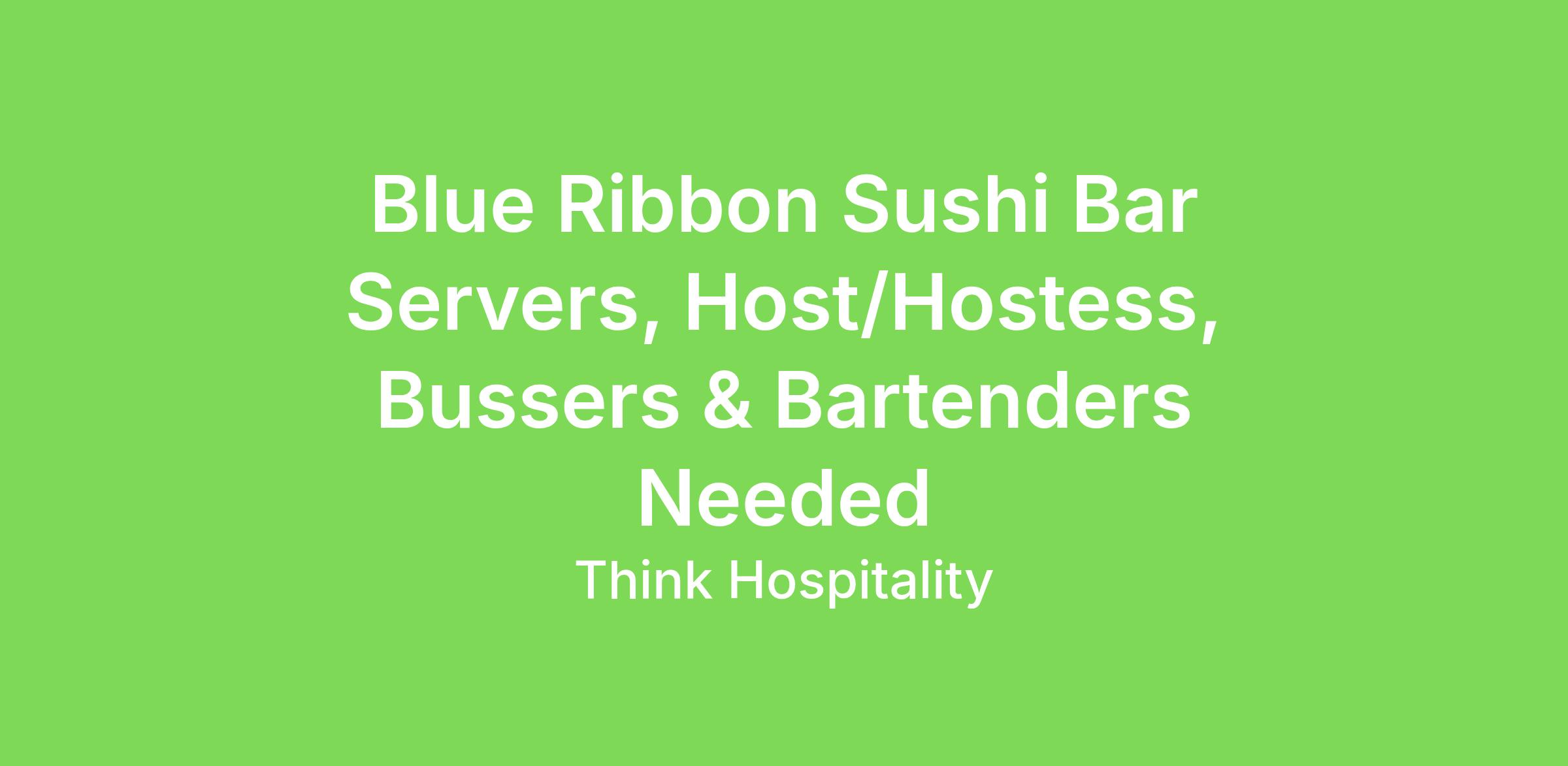 Blue Ribbon Sushi Bar Servers, Host/Hostess, Bussers & Bartenders Needed