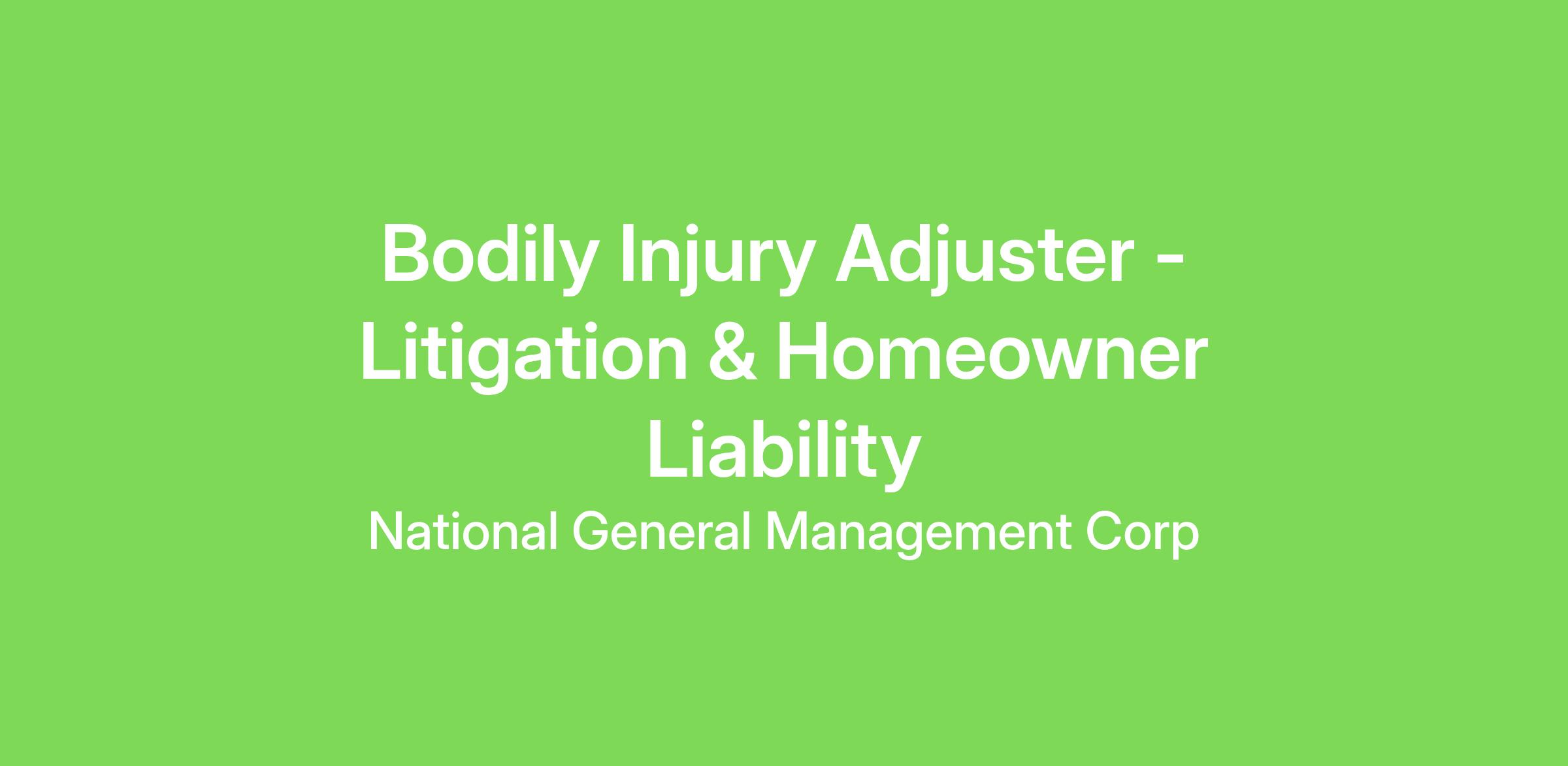 Responsible for investigating and confirming the facts of loss for the most complex automobile accidents. Determines coverage, liability, damages and otherwise adjusts and negotiates claims within limit of authority. Mentors and provides direction to junior employees.We’re looking for a skilled Bodily Injury Litigation Adjuster with Homeowner Liability experience to join our team! In this role, you’ll manage complex injury claims, including fractures, bilateral fractures, fatalities etc., while applying your expertise to ensure accurate and fair outcomes. We’re open to candidates located in Eastern or Central time zones who are eager to make an impact and grow their career in both Bodily Injury Litigation and Homeowner Liability.