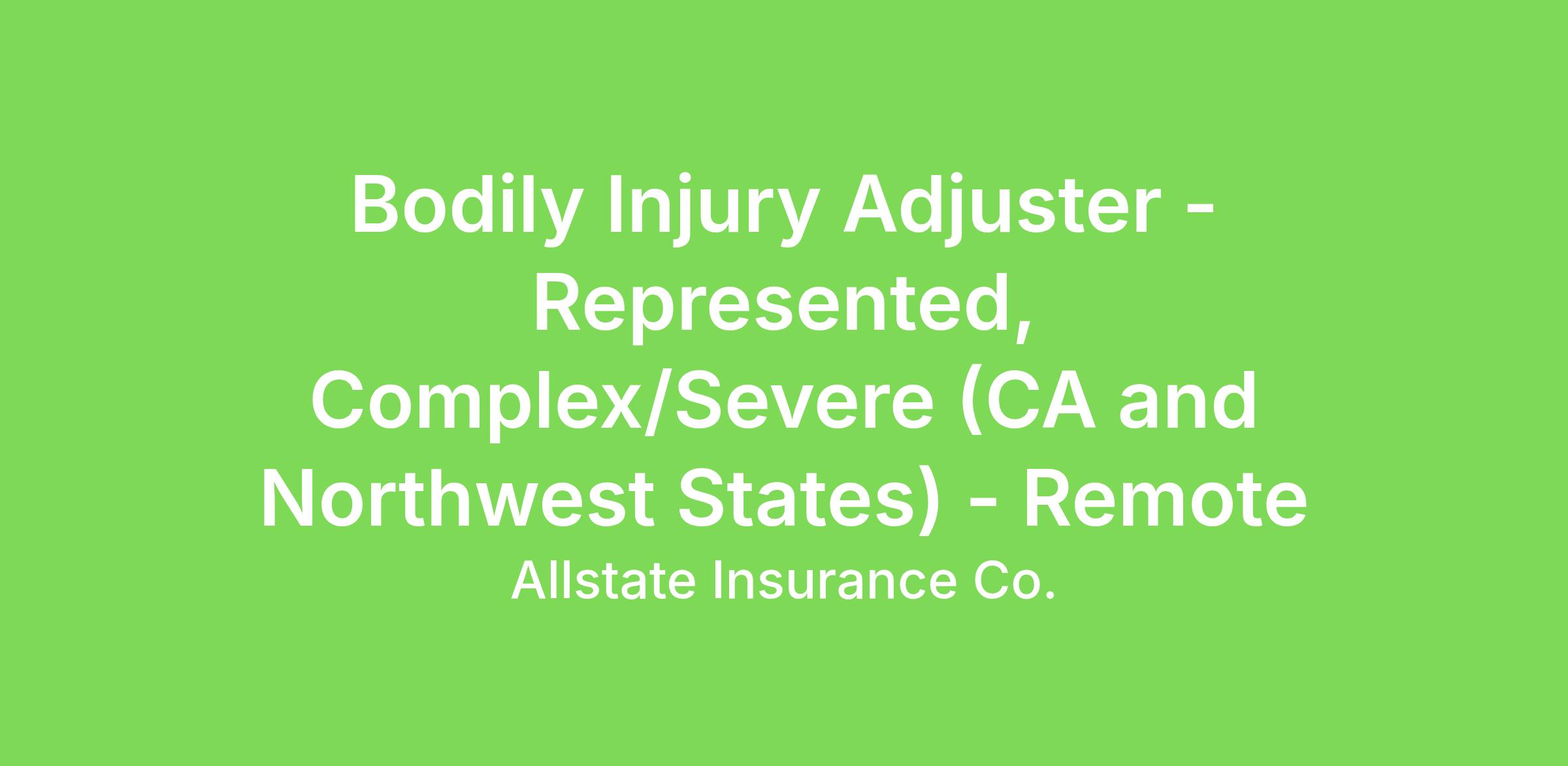 Bodily Injury Adjuster - Represented, Complex/Severe (CA and Northwest States) - Remote