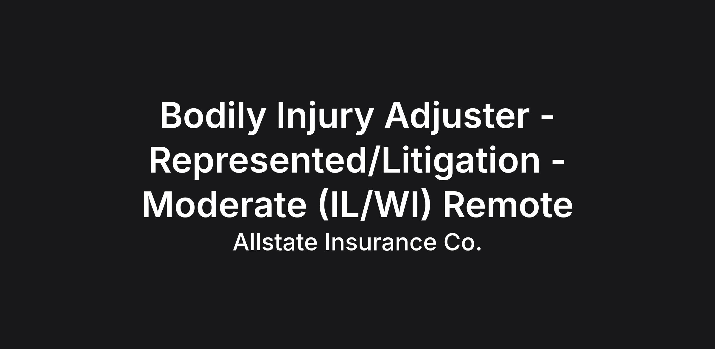 Bodily Injury Adjuster - Represented/Litigation - Moderate (IL/WI) Remote