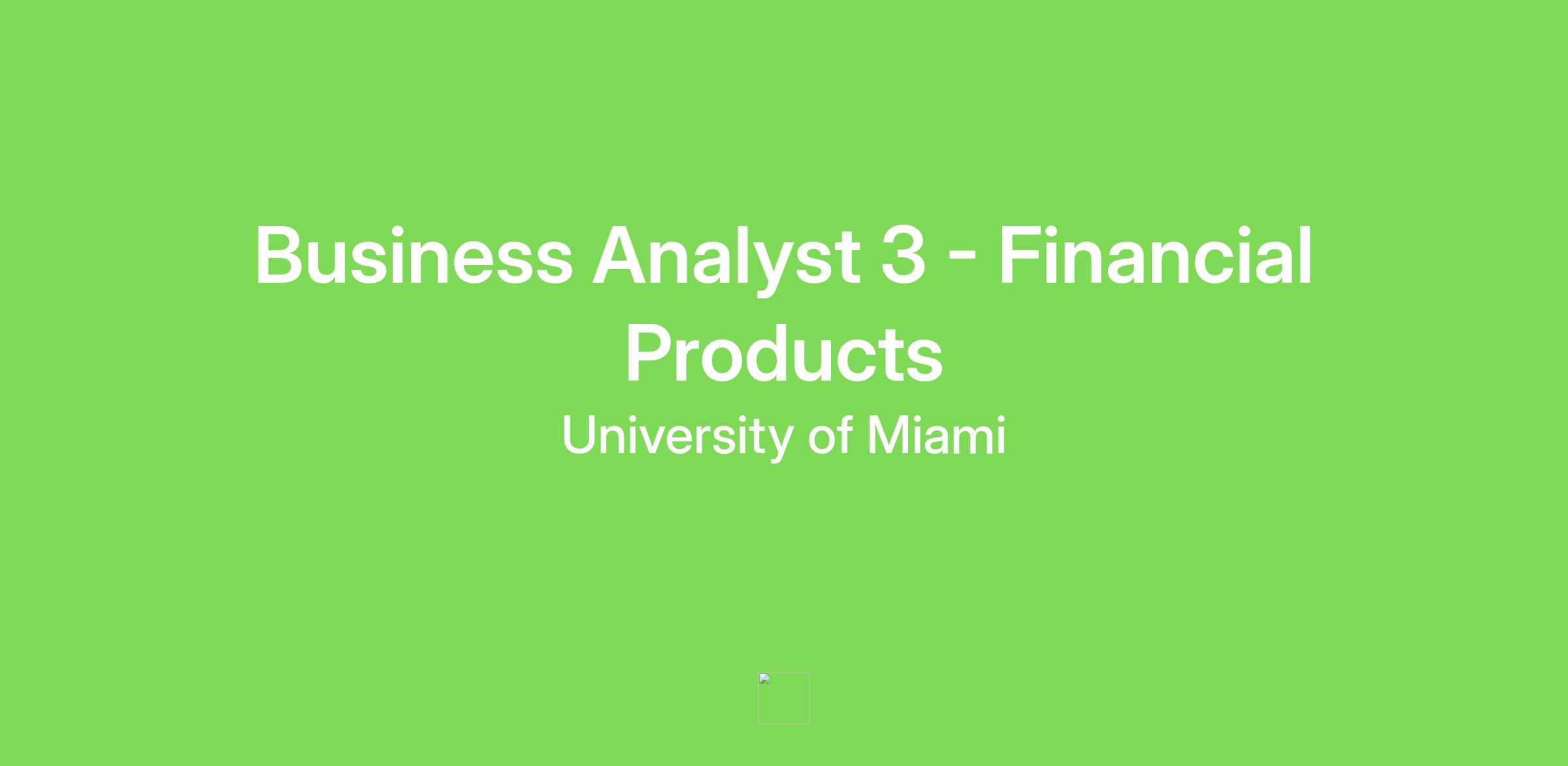 The University of Miami Health (UHealth) System IT Department has an exciting opportunity for a Full-time Business Analyst 3 - Financial Products.