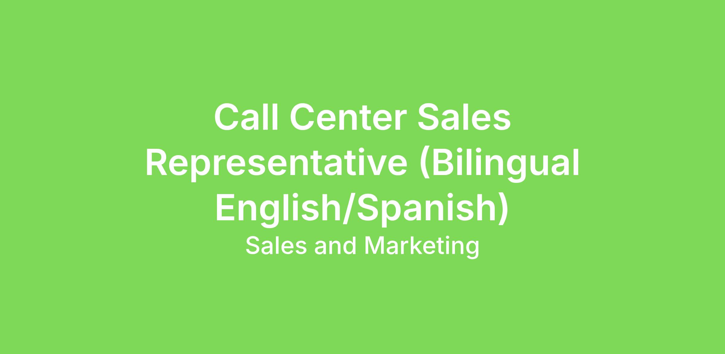 Call Center Sales Representative (Bilingual English/Spanish)