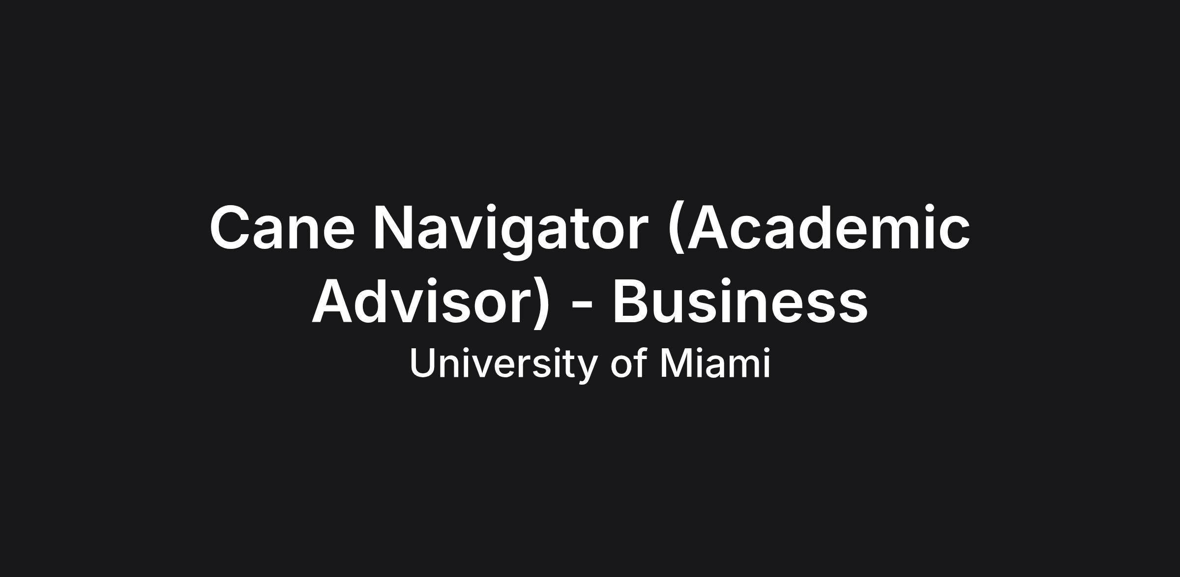 The Cane Navigator (Academic Advisor) supports undergraduate student success by providing proactive, holistic academic advising that promotes student learning, persistence, progression, and timely graduation. Through intentional advising relationships and excellent attention to detail, Cane Navigators guide students in understanding program requirements, institutional policies, and degree pathways while supporting informed academic decision‑making. This role reports to an Associate or Assistant Director of Cane Navigation and collaborates closely with academic units, faculty, and campus partners to support students throughout their undergraduate experience.