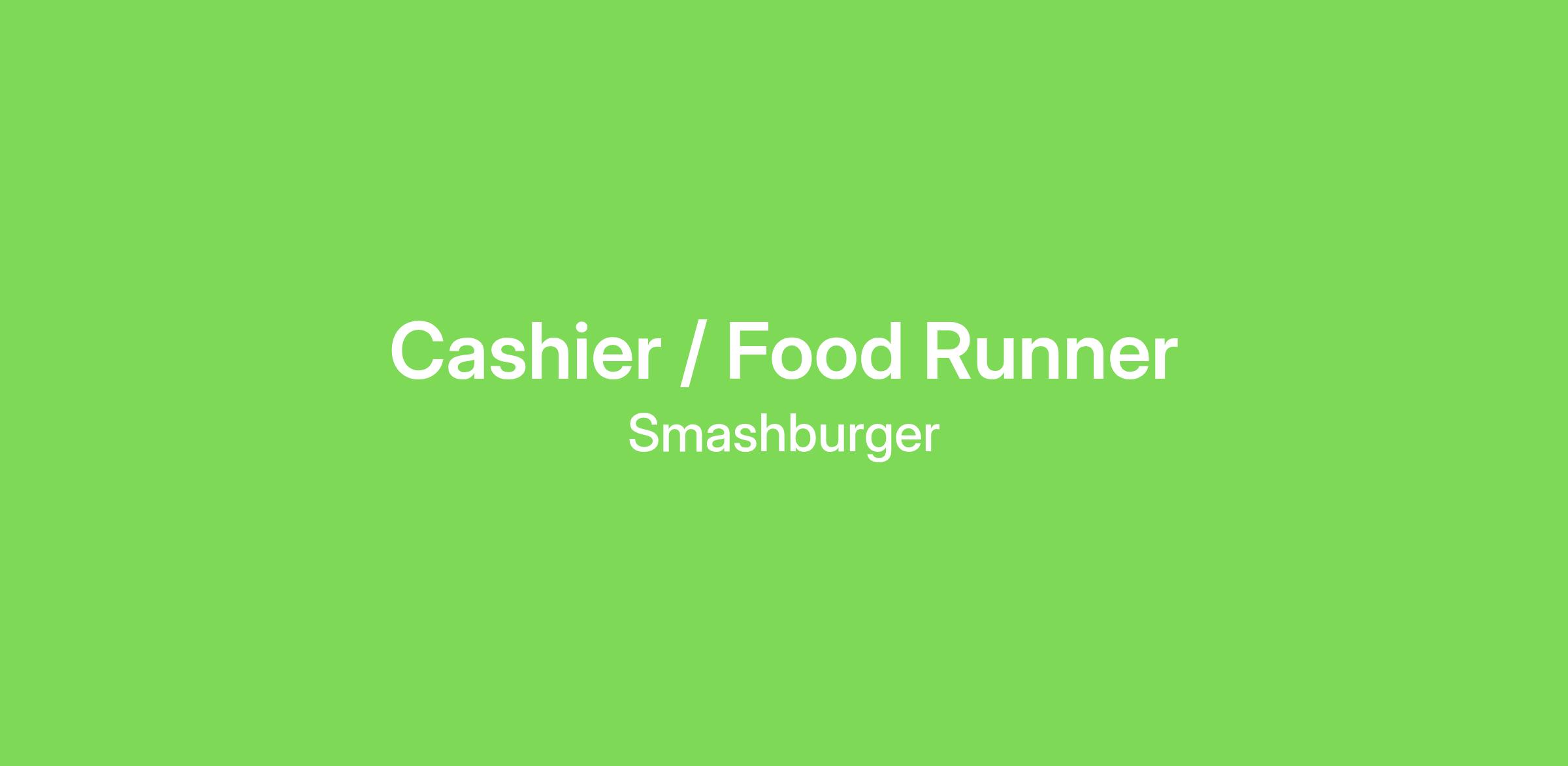 Smashburger in Tampa, FL is currently searching for enthusiastic, energetic people to join our team as full-time Cashiers / Food Runners. Are you looking to work with a fun group of people? Do you want a job that you can look forward to coming to each day? Do you have a great smile, a positive attitude, and a passion for teamwork? If so, read on!