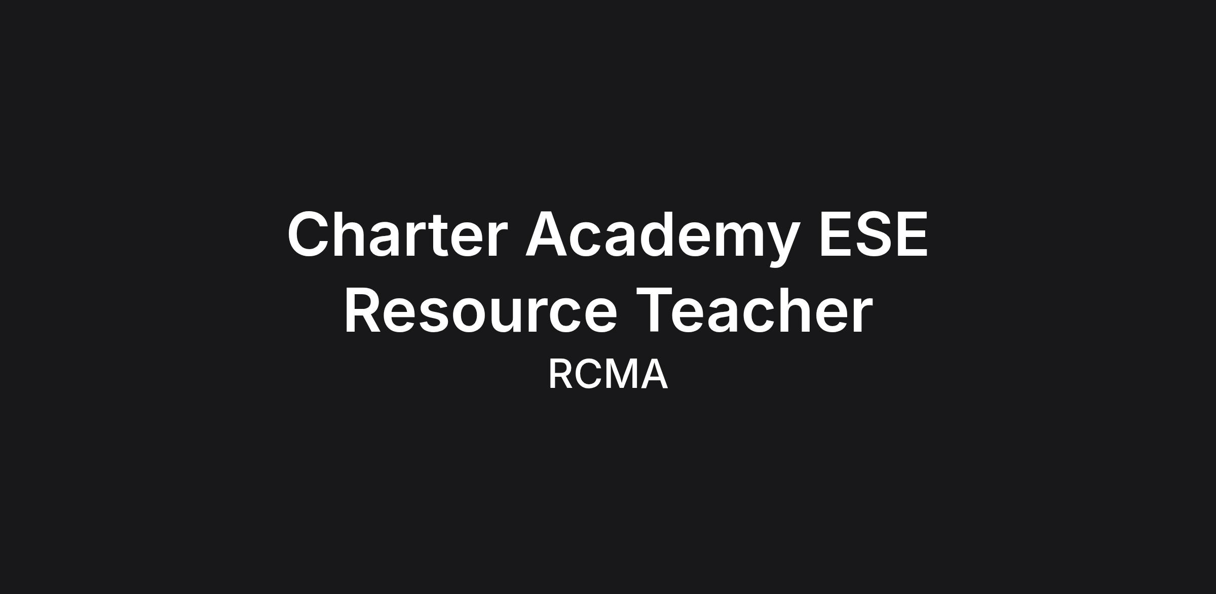 RCMA Wimuama Community Academy, a “B” rated Title I Charter School in Hillsborough County, is seeking an energetic, creative, and passionate ESE Resource Teacher!