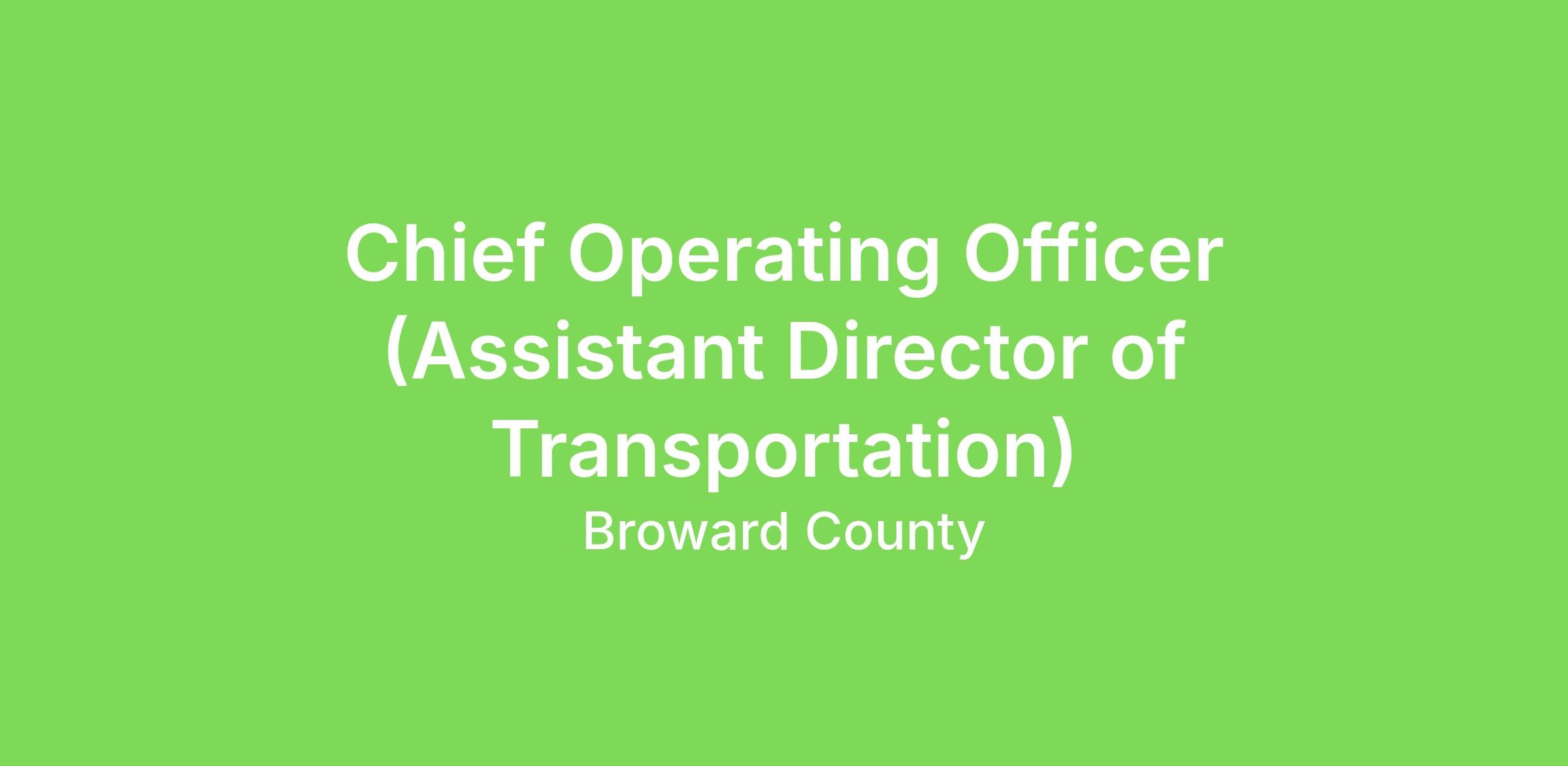 The Broward County Board of County Commissioners, Transportation Department is seeking qualified candidates for the position of Chief Operating Officer (Assistant Director of Transportation) in its Operations Division.