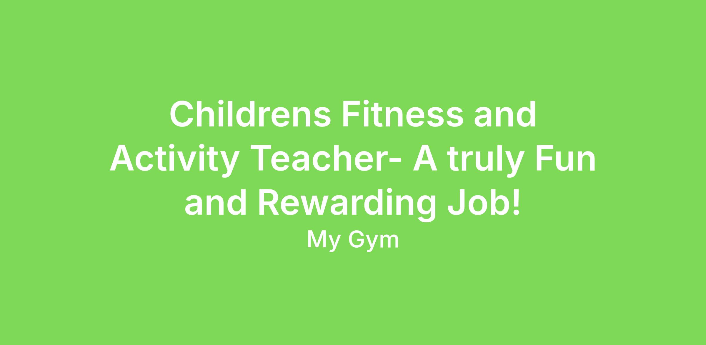 Childrens Fitness and Activity Teacher- A truly Fun and Rewarding Job!