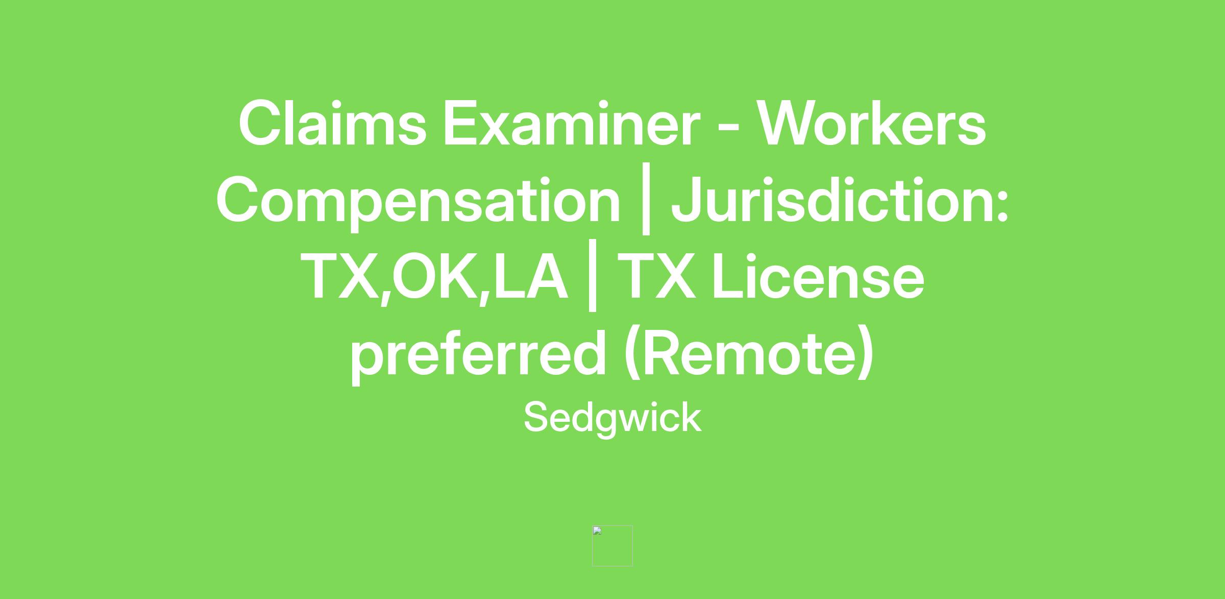 Claims Examiner - Workers Compensation | Jurisdiction: TX,OK,LA | TX License preferred (Remote)