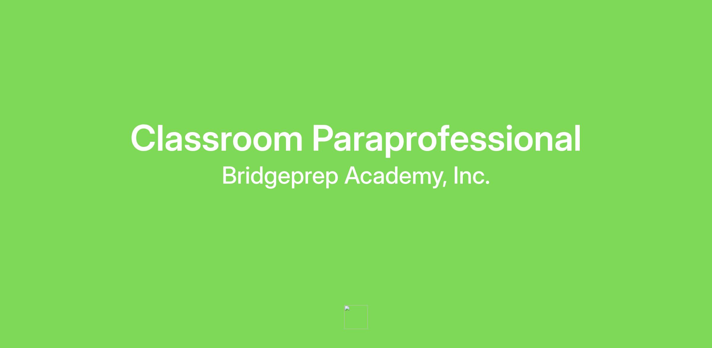 Disclaimer: This job description describes the general nature and level of work being performed by individuals hired into this job. This is not intended to be an exhaustive list of all responsibilities and duties . BridgePrep Academy reserves the right to change any or all content of this job description based on business needs. The incumbent, if applicable, will be consulted and notified of any changes before they become effective.