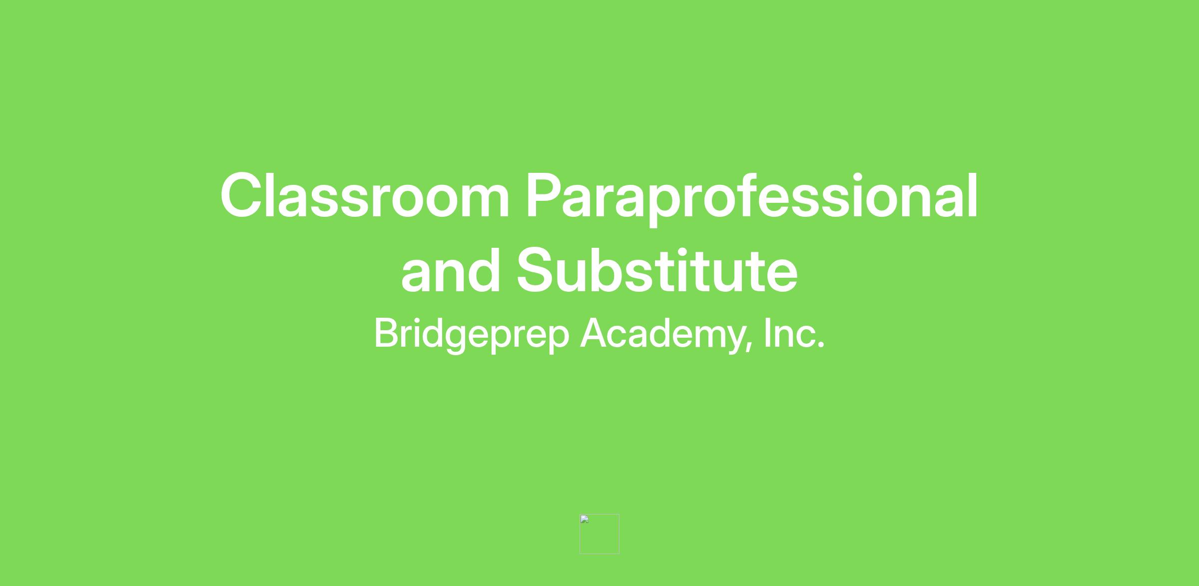 Disclaimer: This job description describes the general nature and level of work being performed by individuals hired into this job. This is not intended to be an exhaustive list of all responsibilities and duties . BridgePrep Academy reserves the right to change any or all content of this job description based on business needs. The incumbent, if applicable, will be consulted and notified of any changes before they become effective.