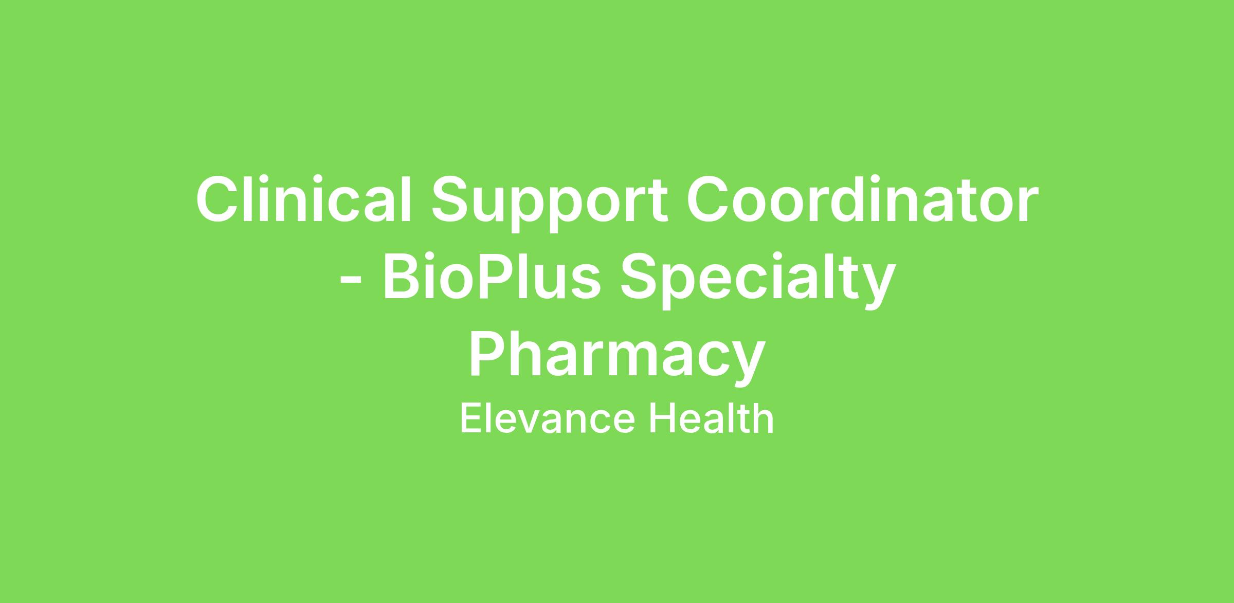 Clinical Support Coordinator - BioPlus Specialty Pharmacy