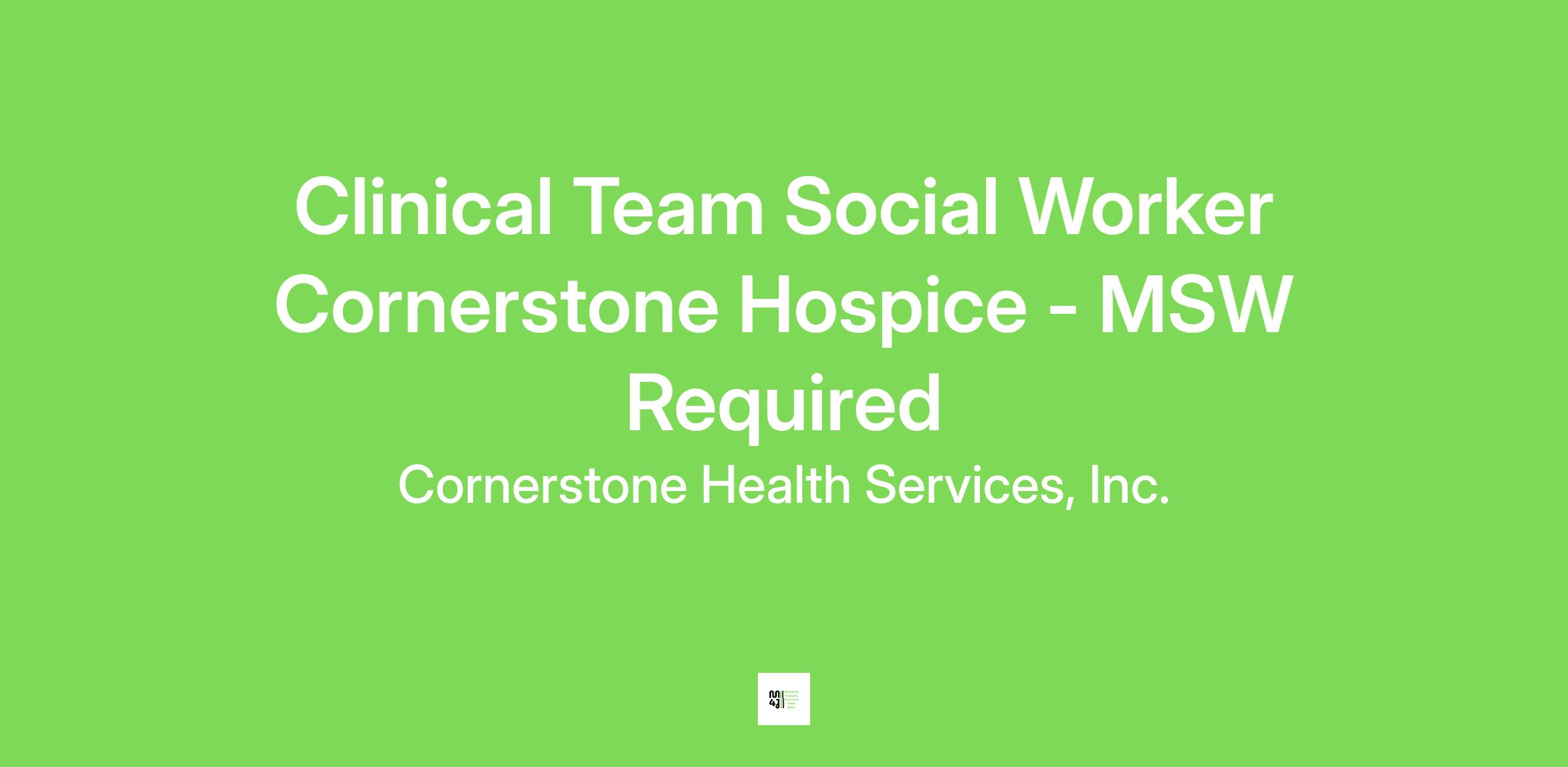 Clinical Team Social Worker Cornerstone Hospice - MSW Required
