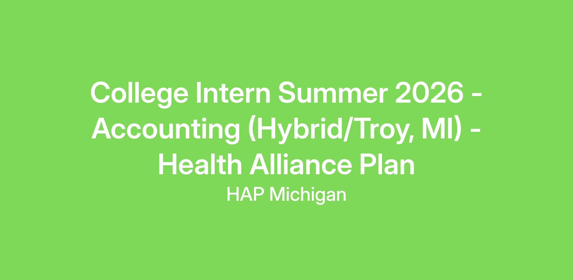 College Intern Summer 2026 - Accounting (Hybrid/Troy, MI) - Health Alliance Plan