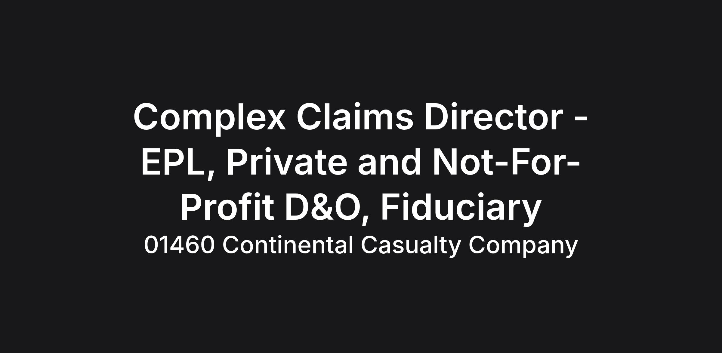 Complex Claims Director - EPL, Private and Not-For-Profit D&O, Fiduciary