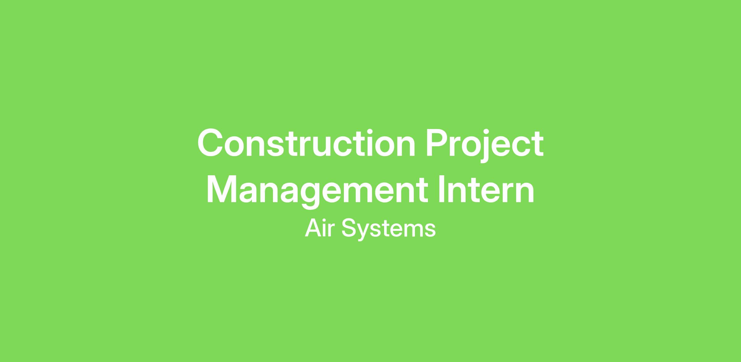 Air Systems is looking for a Part-Time Project Management Intern for our Construction Department in San Jose, CA.The Construction Project Management Intern will support the planning and execution of construction projects with a focus on HVAC systems, ensuring tasks are organized, timelines are met, and project documentation is accurate and complete.