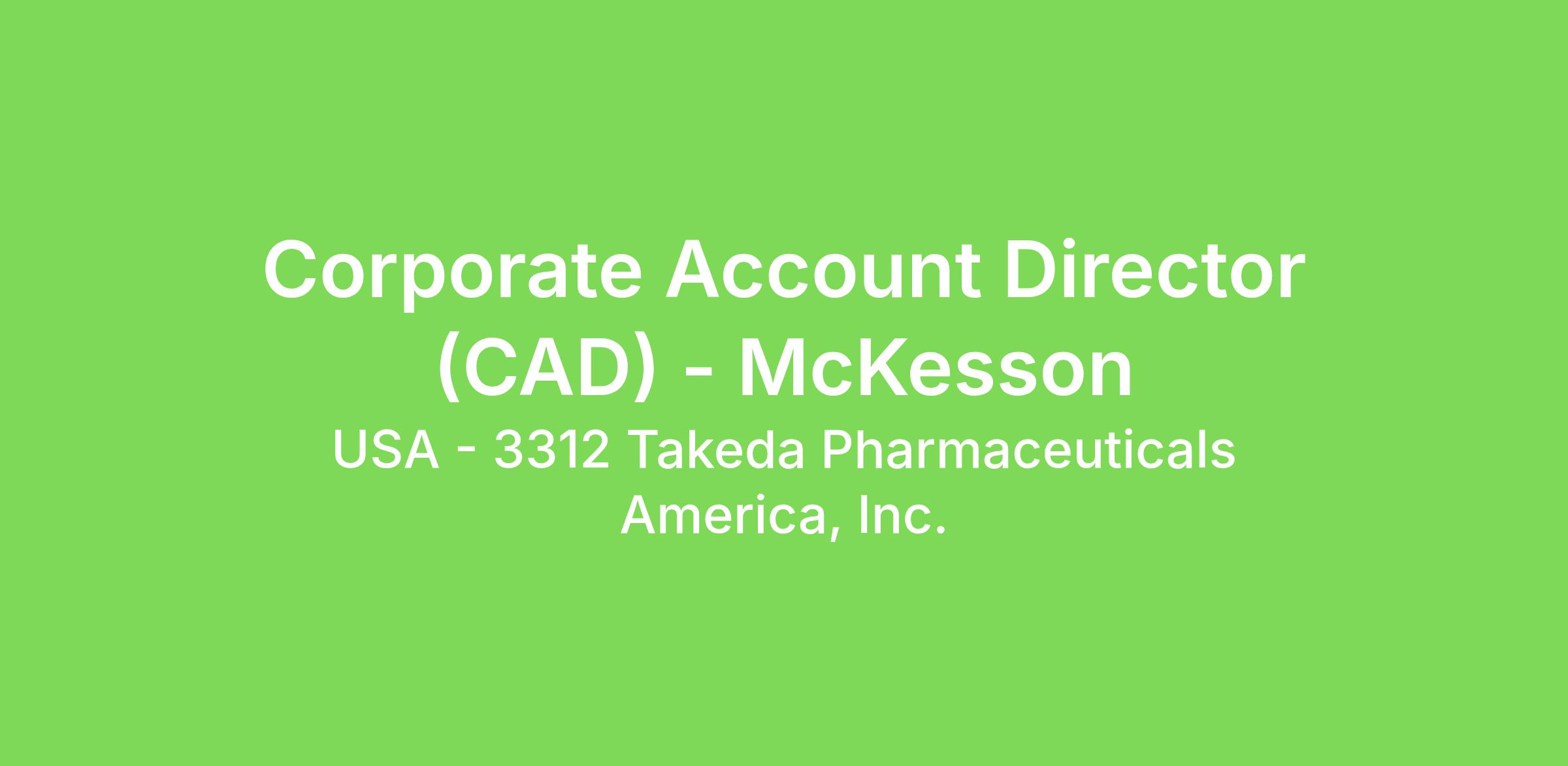 The Corporate Account Director (CAD) - McKesson is responsible for ensuring product access to Takeda Oncology portfolio with GPOs and member practices in assigned accounts.