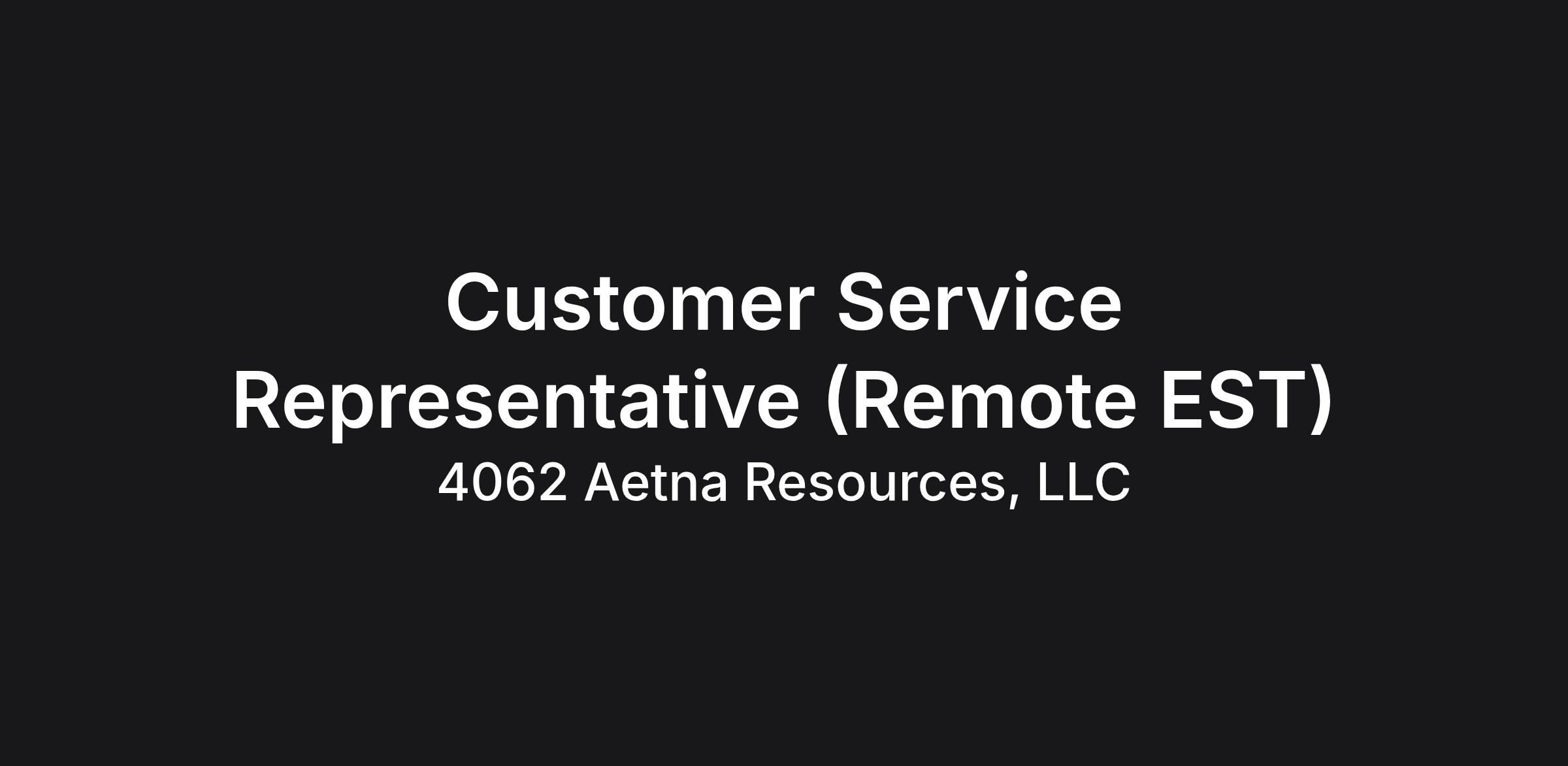 Customer Service Representative (Remote EST)
