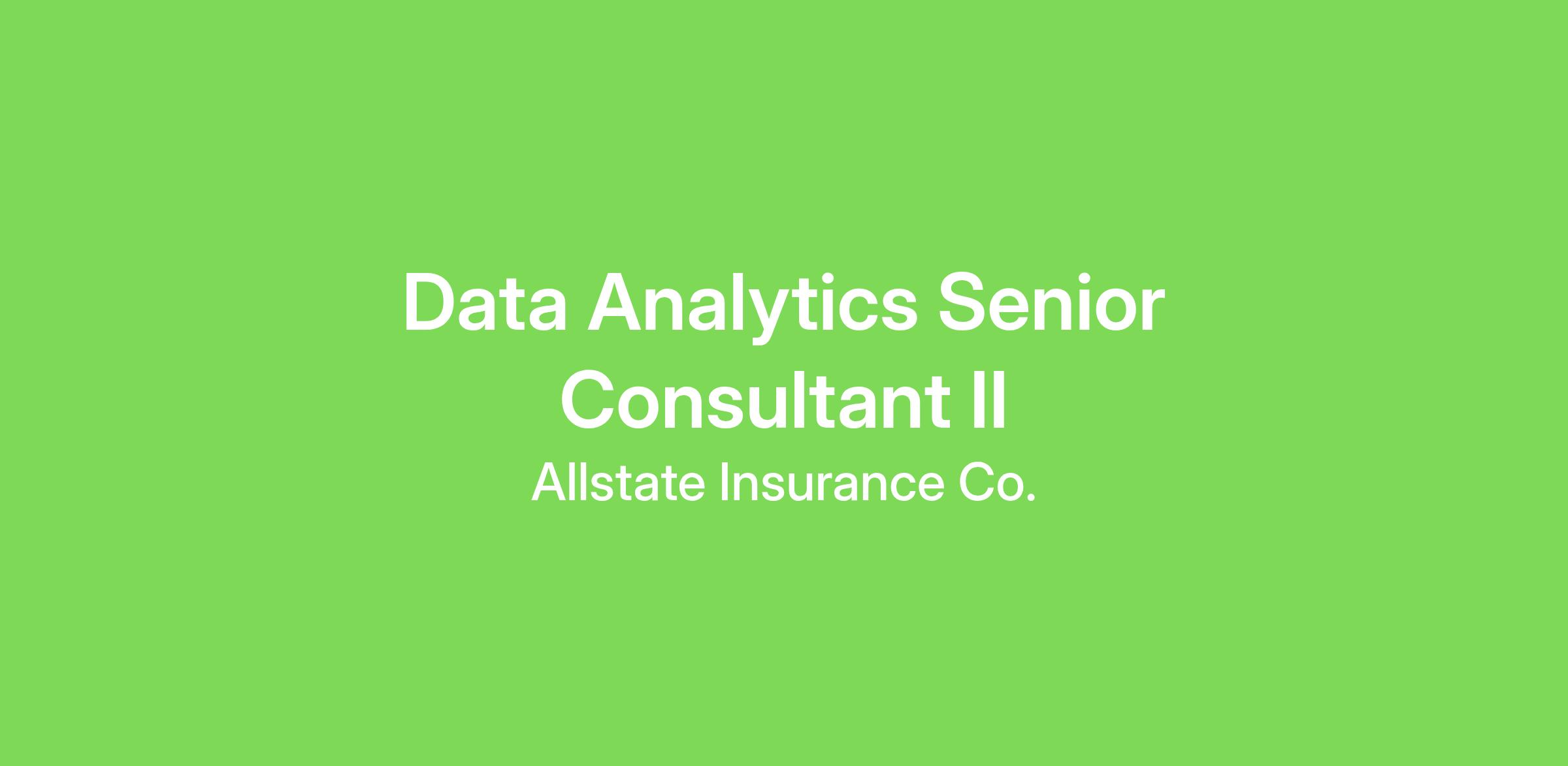At Allstate, great things happen when our people work together to protect families and their belongings from life’s uncertainties. And for more than 90 years, our innovative drive has kept us a step ahead of our customers’ evolving needs. From advocating for seat belts, air bags and graduated driving laws, to being an industry leader in pricing sophistication, telematics, and, more recently, device and identity protection. Job Description The Data Analytics Senior Consultant II is responsible for leveraging data and analytics to answer complex questions and influence business strategy through communication of findings to senior management. The position is also responsible for developing standards of practice around data retrieval, data manipulation, data reporting and data analytics as well as coaching and developing less experienced analysts. Key Responsibilities • Compiles, cleans, organizes and analyzes complex data to understand business results. • Provides technical expertise. • Makes the business insights derived from data and analytics accessible to those without technical skills. • Utilizes data and analytics expertise to coach and develop less experienced analysts. • Establishes, modifies, documents and communicates standards of practice around data retrieval, data manipulation, data quality, data reporting and data analytics. • Influences strategy through data and analytics. • Communicates and presents project information to team and provides presentations/updates to management. • Monitors and evaluates business initiatives against key performance indicators and communicates results and recommendations to management. Experience • 3 or more years of experience (Preferred). Supervisory Responsibilities • This job does not have supervisory duties. Skills Ad Hoc Analysis, Advanced Analytics, Analytics, Business Influence, Data Analytics, Data Building Tool, Data Forecasting, Forecast Analysis, Forecasting, Microsoft Excel, Microsoft Power Business Intelligence (BI), Microsoft Report Builder, MS SQL Queries, Report Builder, Report Building, SQL Administration, SQL Database Queries, SQL Reports, Structured Query Language (SQL) Compensation Base compensation offered for this role is $75,100.00 - $115,000.00 annually and is based on experience and qualifications. *** Total compensation for this role is comprised of several factors, including the base compensation outlined above, plus incentive pay (i.e., commission, bonus, etc.) as applicable for the role. The candidate(s) offered this position will be required to submit to a background investigation. Joining our team isn’t just a job — it’s an opportunity. One that takes your skills and pushes them to the next level. One that encourages you to challenge the status quo. One where you can shape the future of protection while supporting causes that mean the most to you. Joining our team means being part of something bigger – a winning team making a meaningful impact. Allstate generally does not sponsor individuals for employment-based visas for this position. Effective July 1, 2014, under Indiana House Enrolled Act (HEA) 1242, it is against public policy of the State of Indiana and a discriminatory practice for an employer to discriminate against a prospective employee on the basis of status as a veteran by refusing to employ an applicant on the basis that they are a veteran of the armed forces of the United States, a member of the Indiana National Guard or a member of a reserve component. For jobs in San Francisco, please click “here” for information regarding the San Francisco Fair Chance Ordinance. For jobs in Los Angeles, please click “here” for information regarding the Los Angeles Fair Chance Initiative for Hiring Ordinance. To view the “EEO Know Your Rights” poster click “here”. This poster provides information concerning the laws and procedures for filing complaints of violations of the laws with the Office of Federal Contract Compliance Programs. To view the FMLA poster, click “here”. This poster summarizing the major provisions of the Family and Medical Leave Act (FMLA) and telling employees how to file a complaint. It is the Company’s policy to employ the best qualified individuals available for all jobs. Therefore, any discriminatory action taken on account of an employee’s ancestry, age, color, disability, genetic information, gender, gender identity, gender expression, sexual and reproductive health decision, marital status, medical condition, military or veteran status, national origin, race (include traits historically associated with race, including, but not limited to, hair texture and protective hairstyles), religion (including religious dress), sex, or sexual orientation that adversely affects an employee's terms or conditions of employment is prohibited. This policy applies to all aspects of the employment relationship, including, but not limited to, hiring, training, salary administration, promotion, job assignment, benefits, discipline, and separation of employment. At Allstate, we work hard to help people live a good life every day. Allstaters are dedicated to serving clients, customers, and communities, which allows employees to find meaning and value in their work. Allstate offers an environment that fosters innovative thinking where you’ll be able to explore your ideas and feel proud of the work you do. Allstate helps protect nearly 16 million households with auto, home, life, and retirement products. We want every professional connected to Allstate to be committed to giving our customers the best and that means finding the best talent. We want you to be our next great addition. It’s easy to search and apply for a new opportunity with Allstate. Simply use the links below to identify the openings that interest you. About Us
