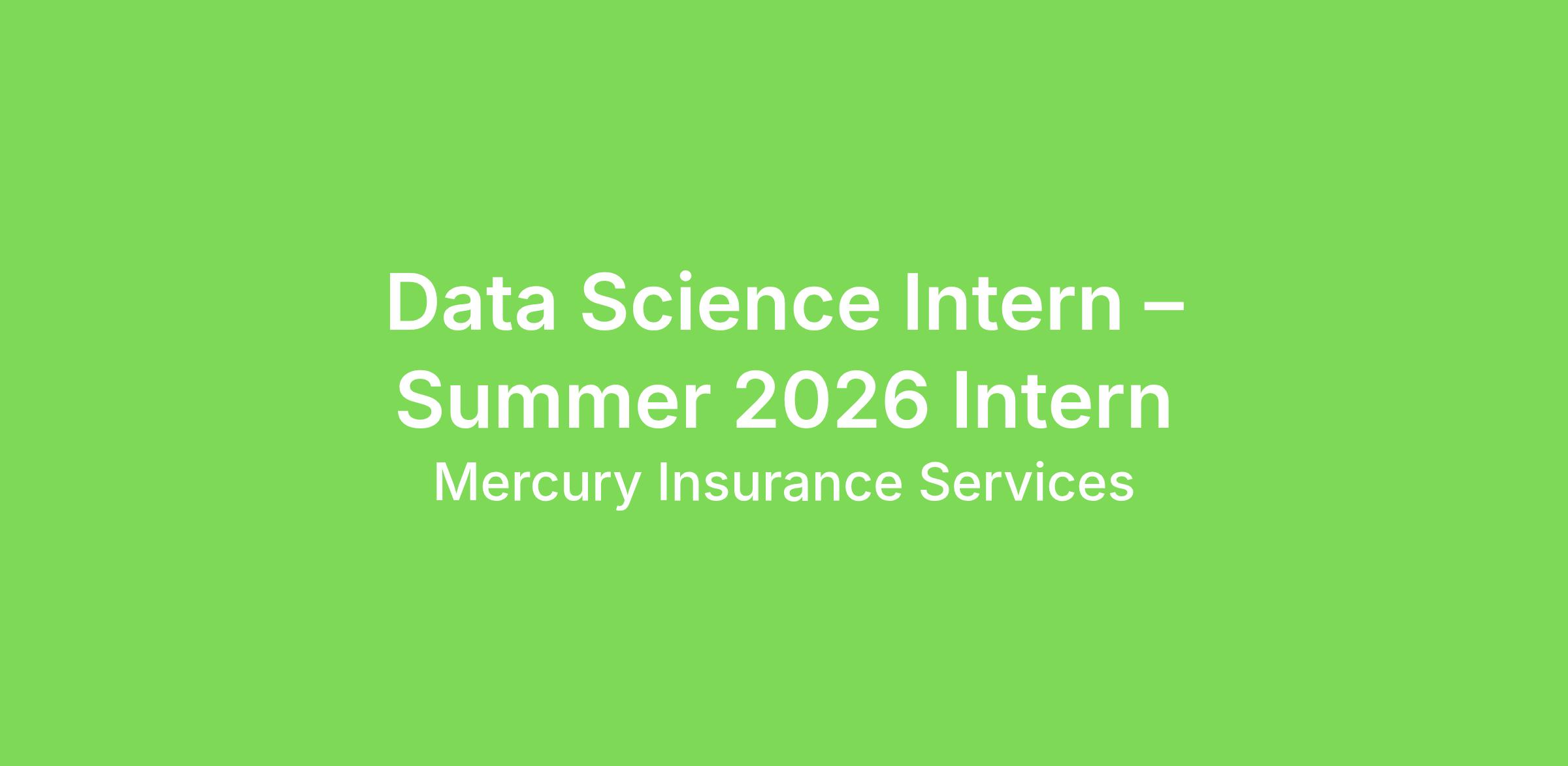 Data Science Intern – Summer 2026 Intern