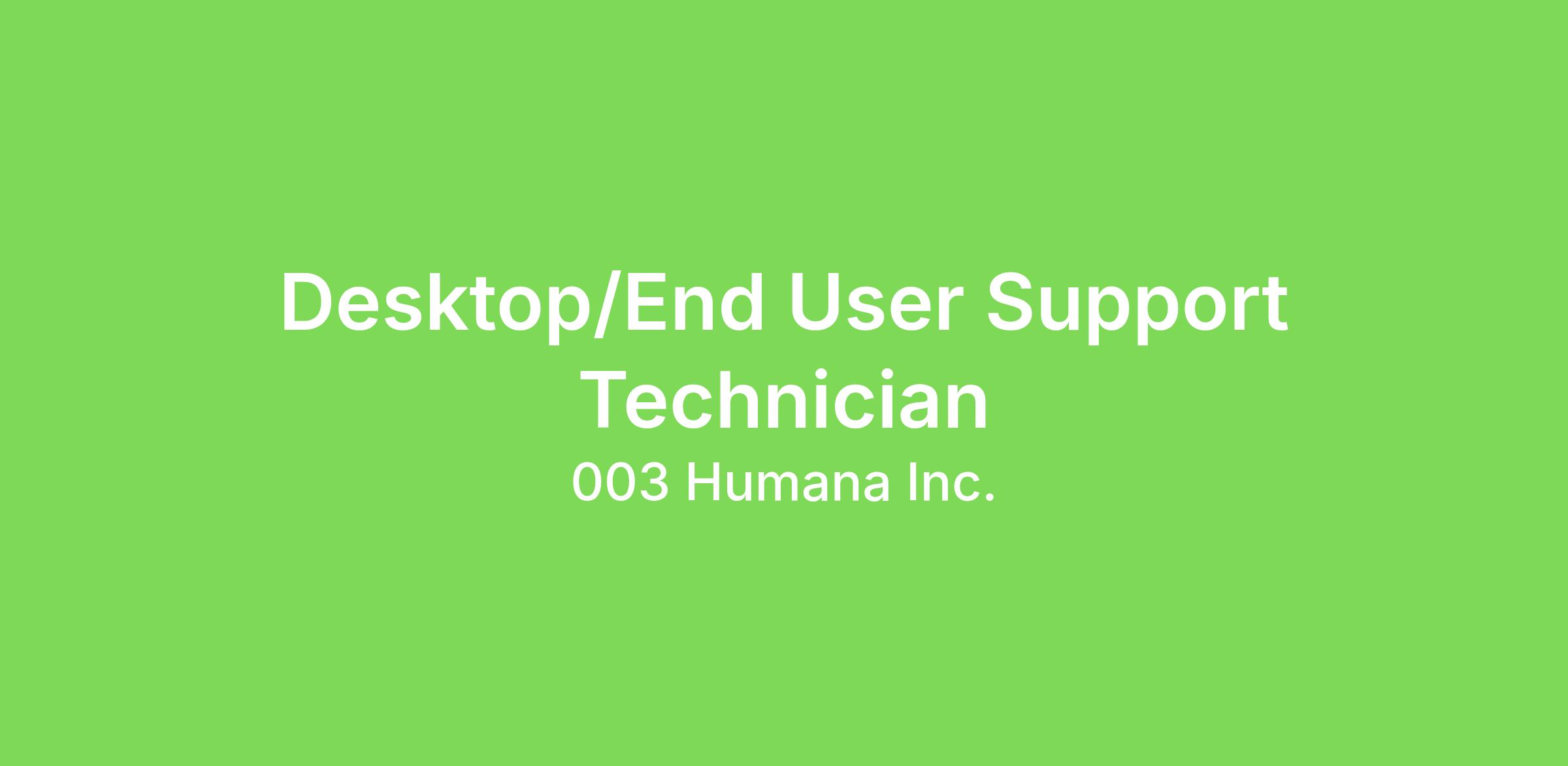 Become a part of our caring community and help us put health first The Desktop/End User Support Technician maintains, repairs, and troubleshoots desktop hardware and software packages. Also responsible for customer service and end-user training. The Desktop/End User Support Technician 2 performs varied activities and moderately complex administrative/operational/customer support assignments. Performs computations. Typically works on semi-routine assignments. The Desktop/End User Support Technician researches and resolves technical problems of moderate complexity, typically escalated from first line support teams. Responds to escalated telephone, email and on line requests for technical support. Documents, tracks, and monitors the problem using applicable systems and tools. Decisions are typically focus on interpretation of area/department policy and methods for completing assignments. Works within defined parameters to identify work expectations and quality standards, but has some latitude over prioritization/timing, and works under minimal direction. Follows standard policies/practices that allow for some opportunity for interpretation/deviation and/or independent discretion. Use your skills to make an impact Required Qualifications 1- 3 years of technical experience as a Desktop/End User Support Engineer Experienced in researching and resolves technical problems of moderate complexity, typically escalated from first line support teams. Experienced responding to escalated telephone, email and online requests for technical support Experienced documenting, tracking, and monitoring the problem using applicable systems and tools. Understands department, segment, and organizational strategy and operating objectives, including their linkages to related areas. Must be passionate about contributing to an organization focused on continuously improving consumer experiences Preferred Qualifications Bachelor's Degree in Computer Science Additional Information Work-At-Home Requirements WAH requirements: Must have the ability to provide a high speed DSL or cable modem for a home office. Associates or contractors who live and work from home in the state of California will be provided payment for their internet expense. A minimum standard speed for optimal performance of 25x10 (25mpbs download x 10mpbs upload) is required. Satellite and Wireless Internet service is NOT allowed for this role. A dedicated space lacking ongoing interruptions to protect member PHI / HIPAA information Travel: While this is a remote position, occasional travel to Humana's offices for training or meetings may be required. Scheduled Weekly Hours 40 Pay Range The compensation range below reflects a good faith estimate of starting base pay for full time (40 hours per week) employment at the time of posting. The pay range may be higher or lower based on geographic location and individual pay will vary based on demonstrated job related skills, knowledge, experience, education, certifications, etc. $44,900 - $60,200 per year Description of Benefits Humana, Inc. and its affiliated subsidiaries (collectively, “Humana”) offers competitive benefits that support whole-person well-being. Associate benefits are designed to encourage personal wellness and smart healthcare decisions for you and your family while also knowing your life extends outside of work. Among our benefits, Humana provides medical, dental and vision benefits, 401(k) retirement savings plan, time off (including paid time off, company and personal holidays, volunteer time off, paid parental and caregiver leave), short-term and long-term disability, life insurance and many other opportunities. About us Humana Inc. (NYSE: HUM) is committed to putting health first – for our teammates, our customers and our company. Through our Humana insurance services and CenterWell healthcare services, we make it easier for the millions of people we serve to achieve their best health – delivering the care and service they need, when they need it. These efforts are leading to a better quality of life for people with Medicare, Medicaid, families, individuals, military service personnel, and communities at large. Equal Opportunity Employer It is the policy of Humana not to discriminate against any employee or applicant for employment because of race, color, religion, sex, sexual orientation, gender identity, national origin, age, marital status, genetic information, disability or protected veteran status. It is also the policy of Humana to take affirmative action, in compliance with Section 503 of the Rehabilitation Act and VEVRAA, to employ and to advance in employment individuals with disability or protected veteran status, and to base all employment decisions only on valid job requirements. This policy shall apply to all employment actions, including but not limited to recruitment, hiring, upgrading, promotion, transfer, demotion, layoff, recall, termination, rates of pay or other forms of compensation and selection for training, including apprenticeship, at all levels of employment.