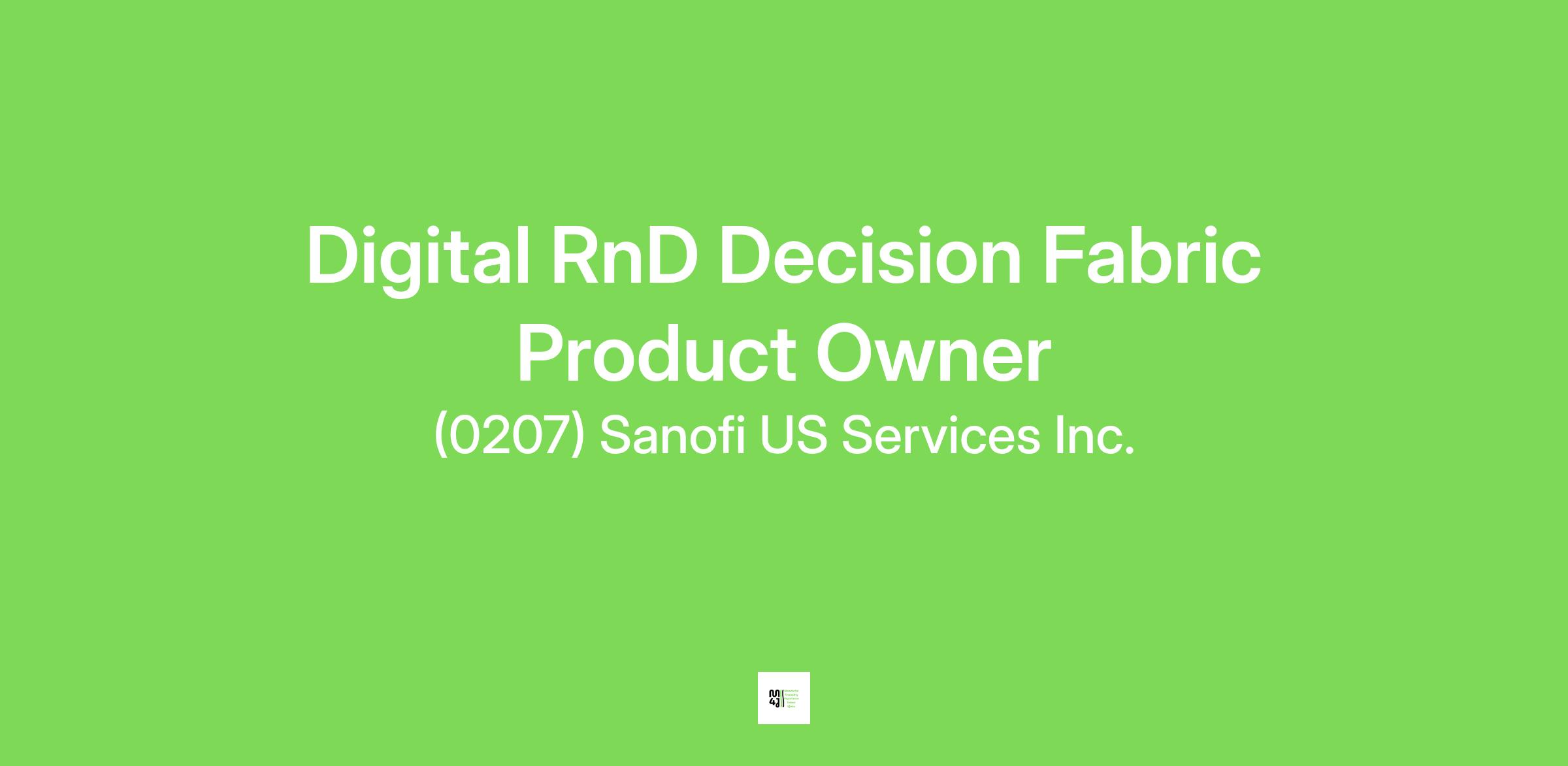 Job Title: Digital RnD Decision Fabric Product Owner