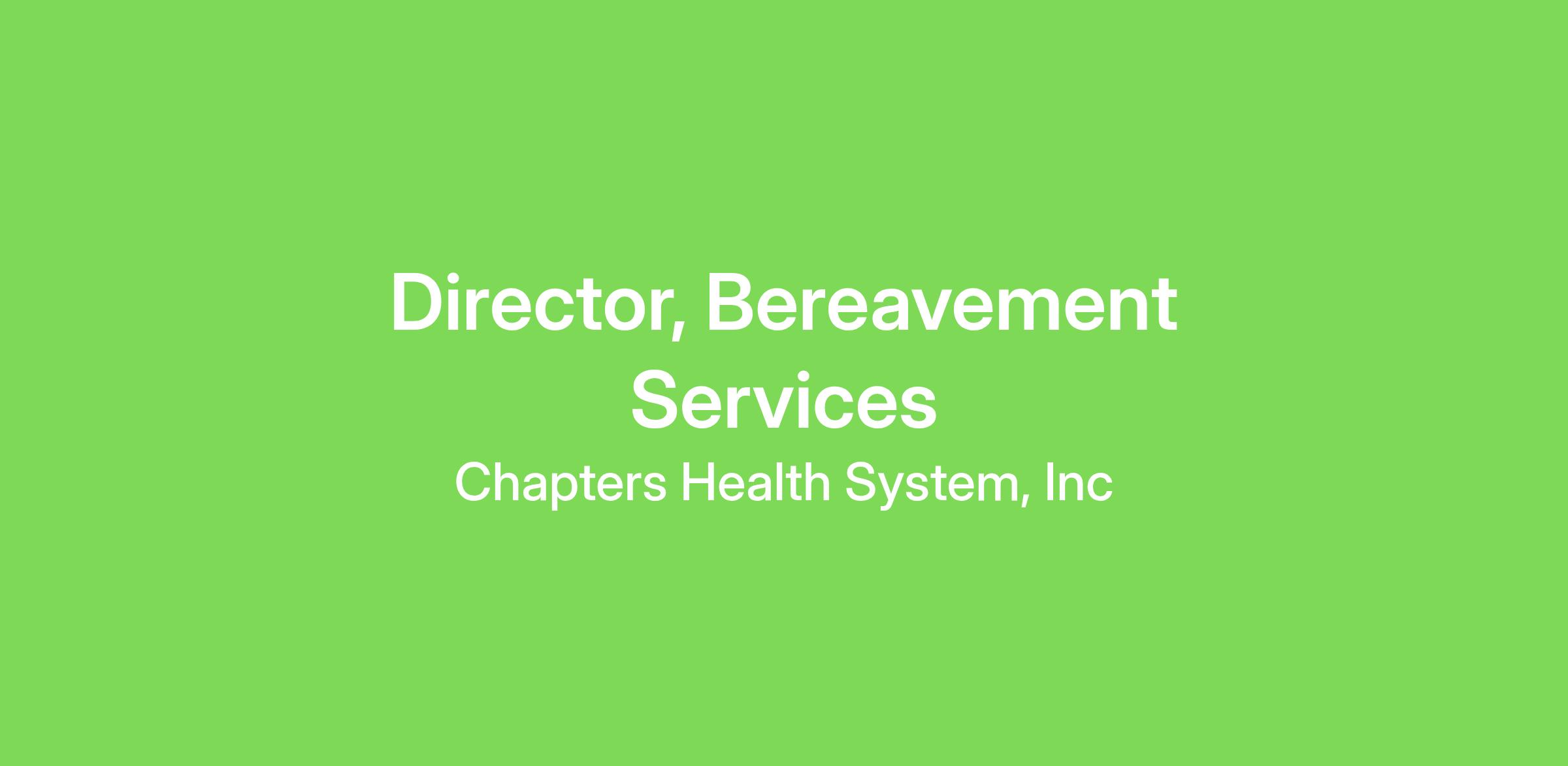 The Director, Bereavement Services represents the Bereavement Counselors and the provision of bereavement services on an enterprise level to ensure that delivery of care and utilization of ancillary programs are uniform, compliant and of the highest quality. The Director, Bereavement Services works with Support Services & Patient Experience and clinical leadership to ensure best practices are in place to maximize the patient experience enterprise wide.