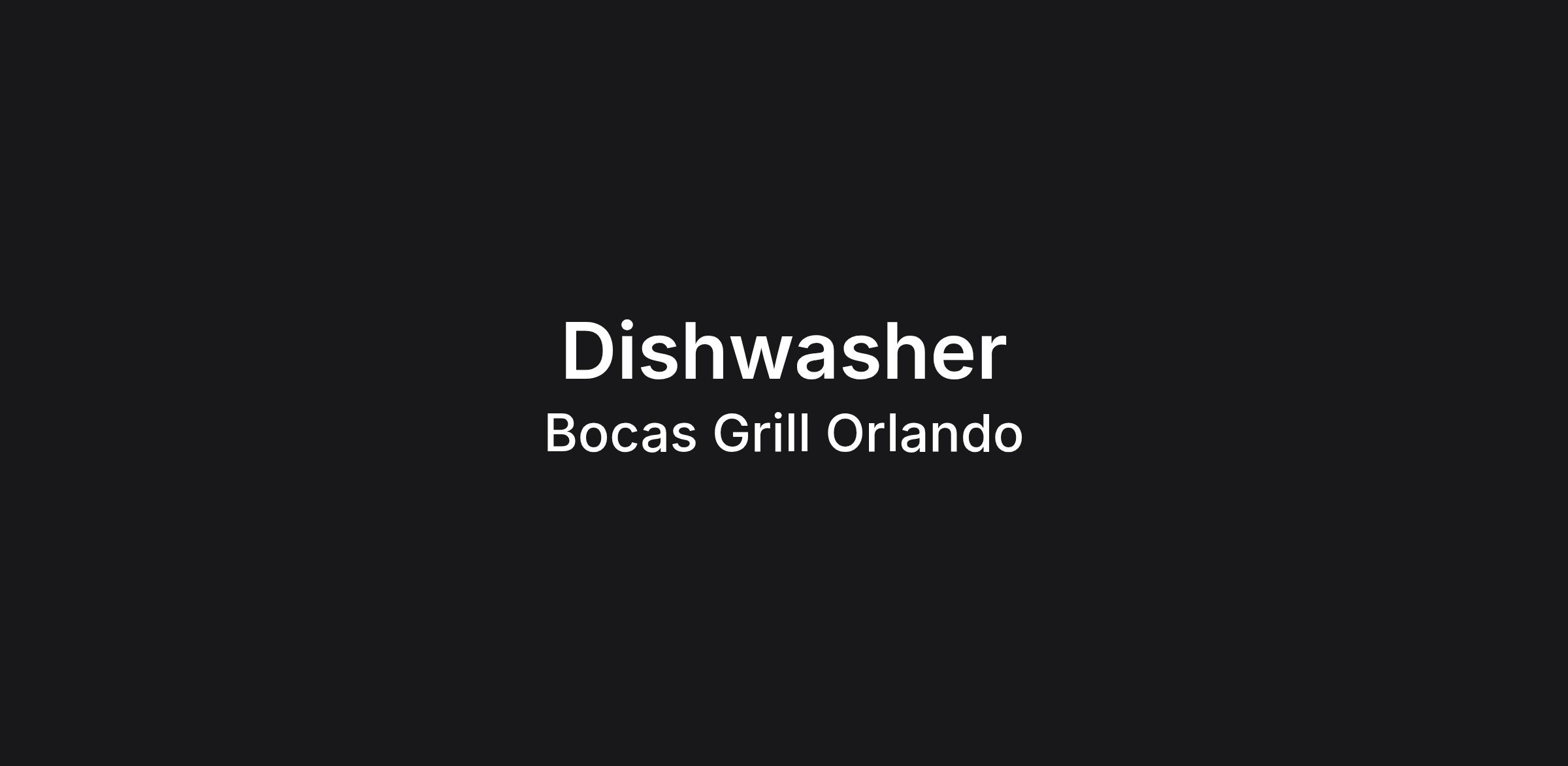 Bocas's Grill & Bar en Orlando, FL está buscando un dishwasher para unirse a nuestro 50 persona equipo fuerte . Estamos ubicados en 7600 Dr Phillips Blvd #22 . Nuestro candidato ideal es auto conducido , motivado y de confianza .