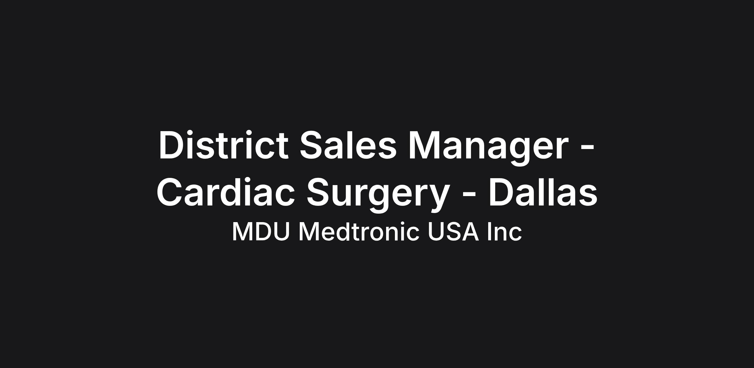 District Sales Manager - Cardiac Surgery - Dallas