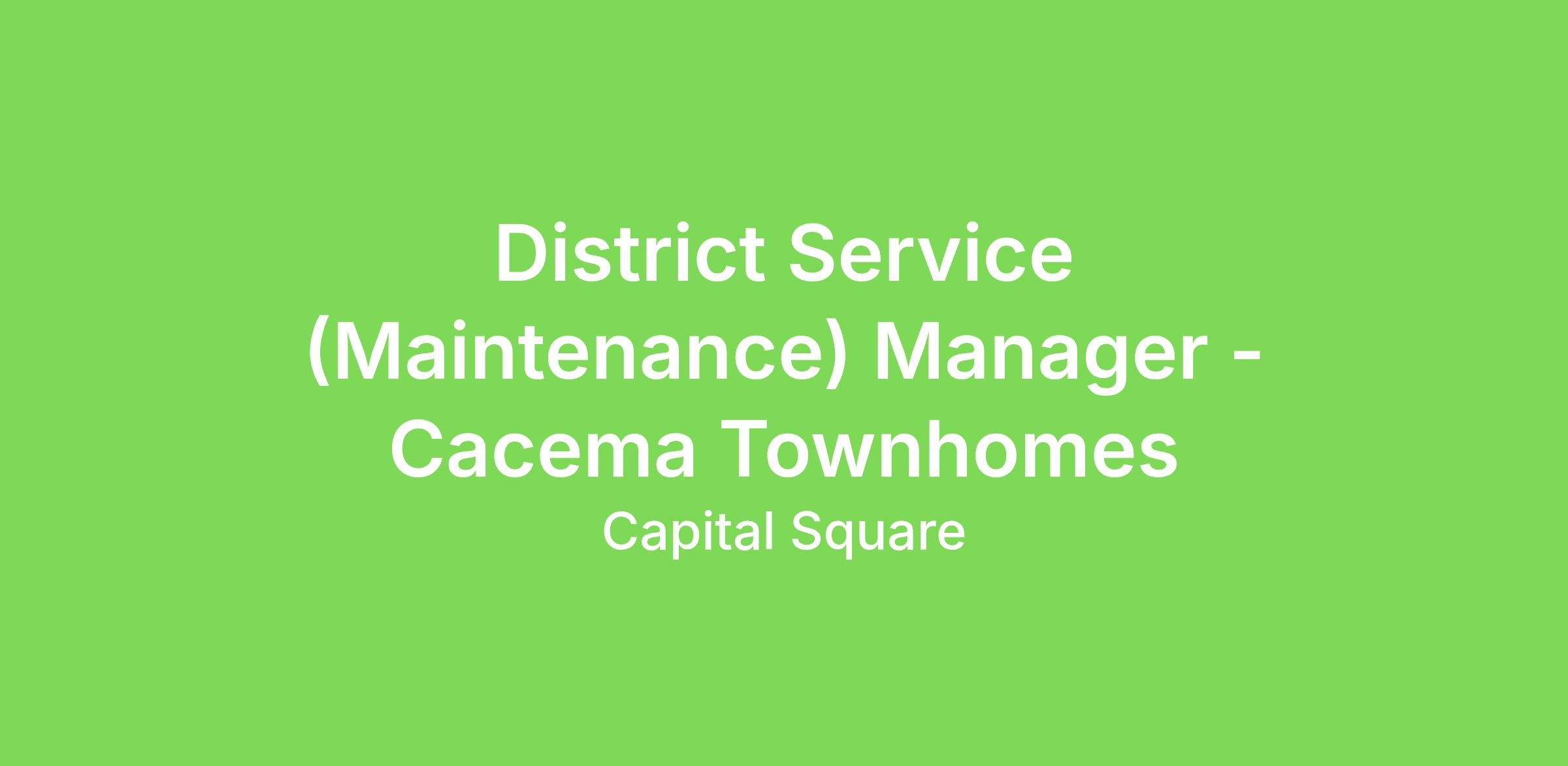 Approximately 70% of time allocation will be spent at assigned home community (Cacema Townhomes) preforming regularly scheduled Service Manager (SM) responsibilities. Up to 30% of time allocation may be spent servicing training, CapEx and/or Renovation projects within assigned region for District Service Manager responsibilities.